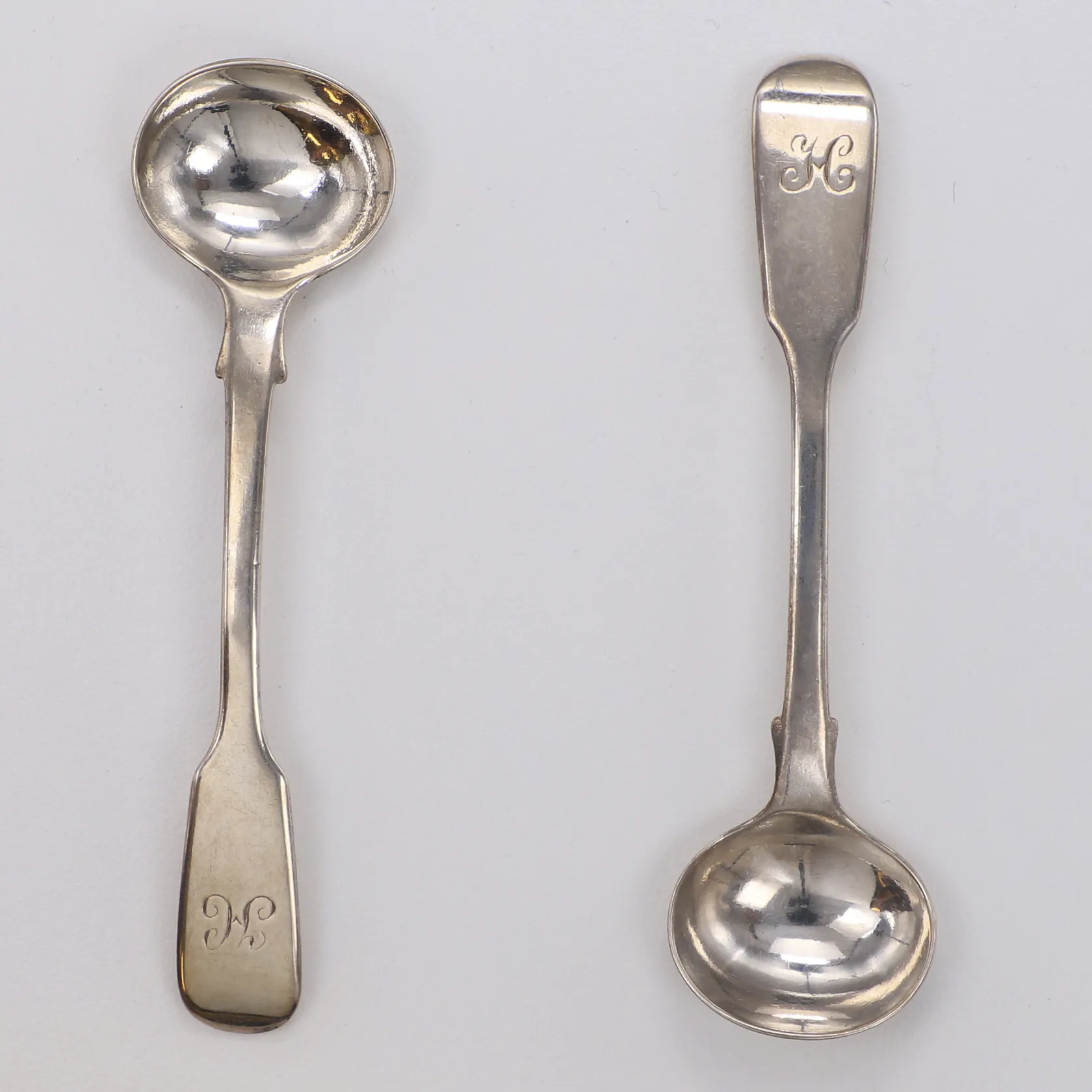 2 skedar, längd 10,5cm, gravyr, engelska stämplar, 830/1000 silver Vikt: 25,3 g.