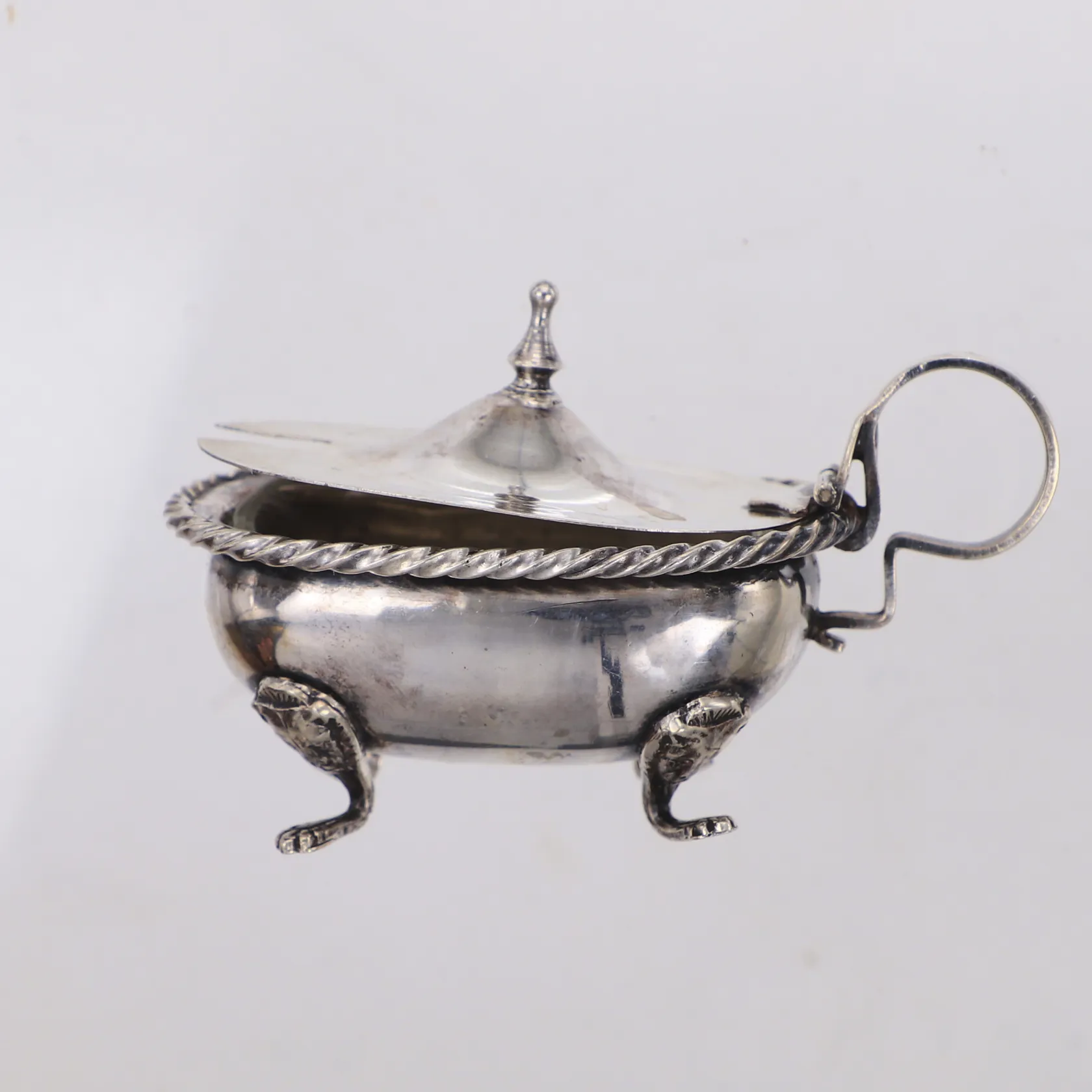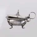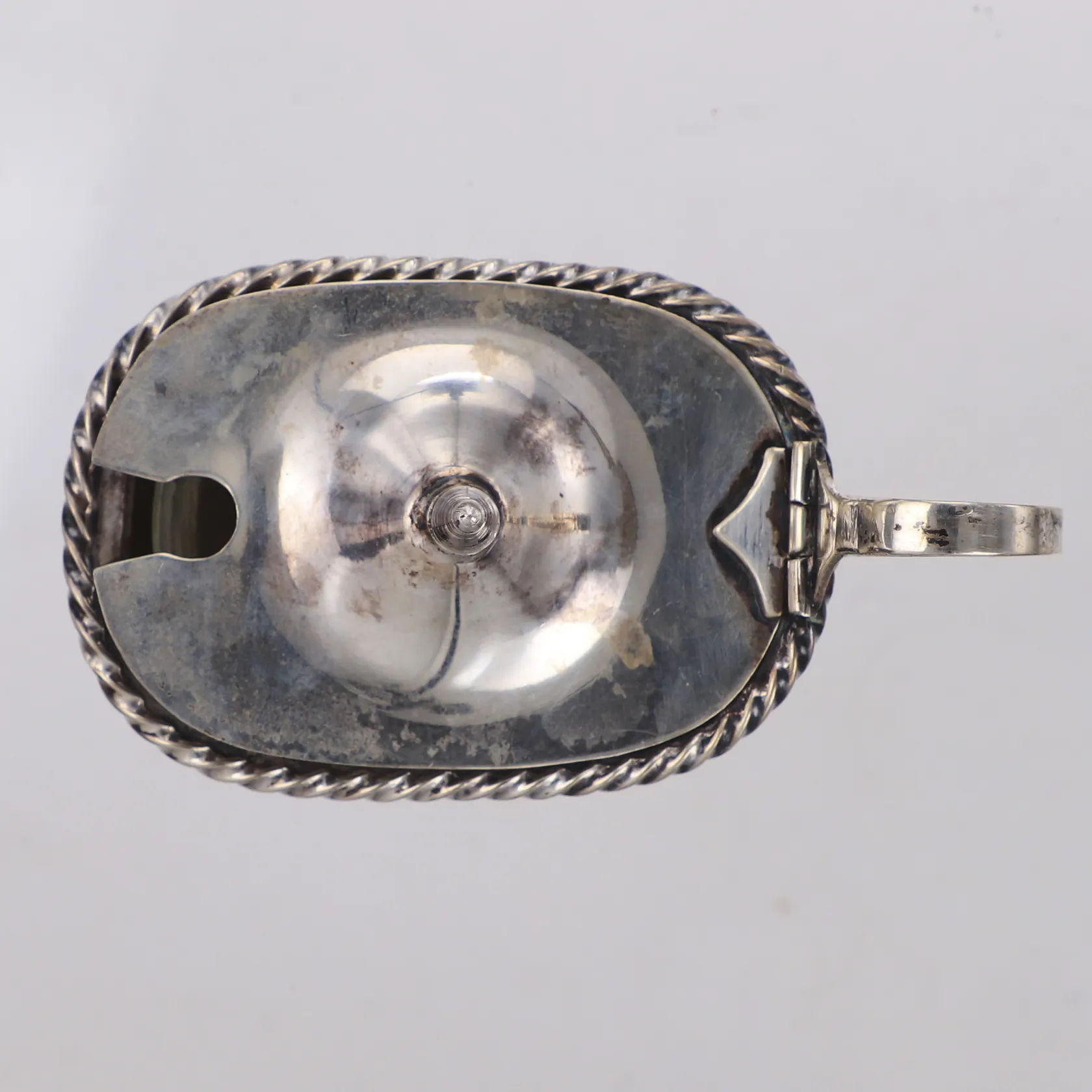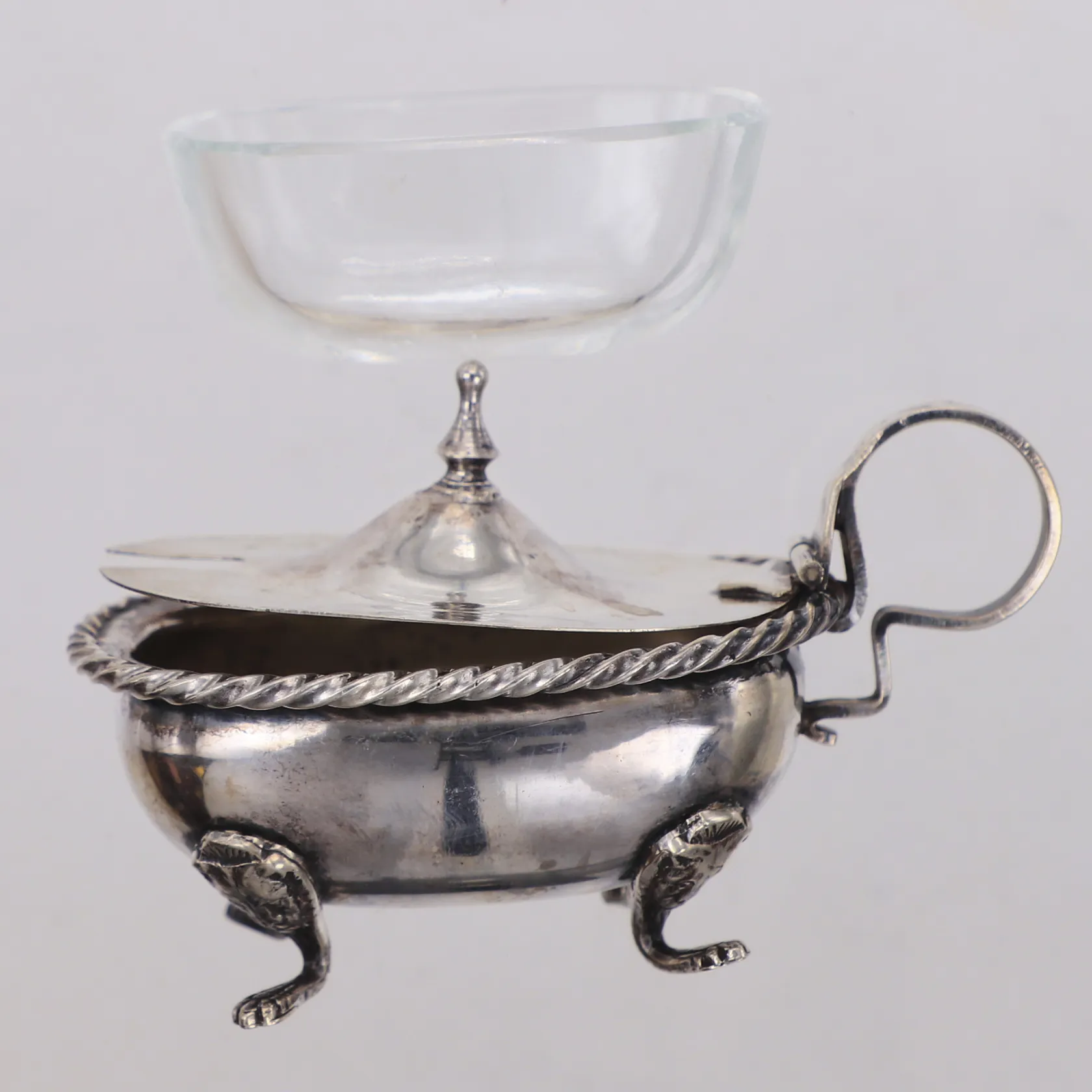 Saltskål, längd 75mm, höjd 40mm, glasinsats, lätt skev, 800/1000 silver Vikt: 43,1 g.