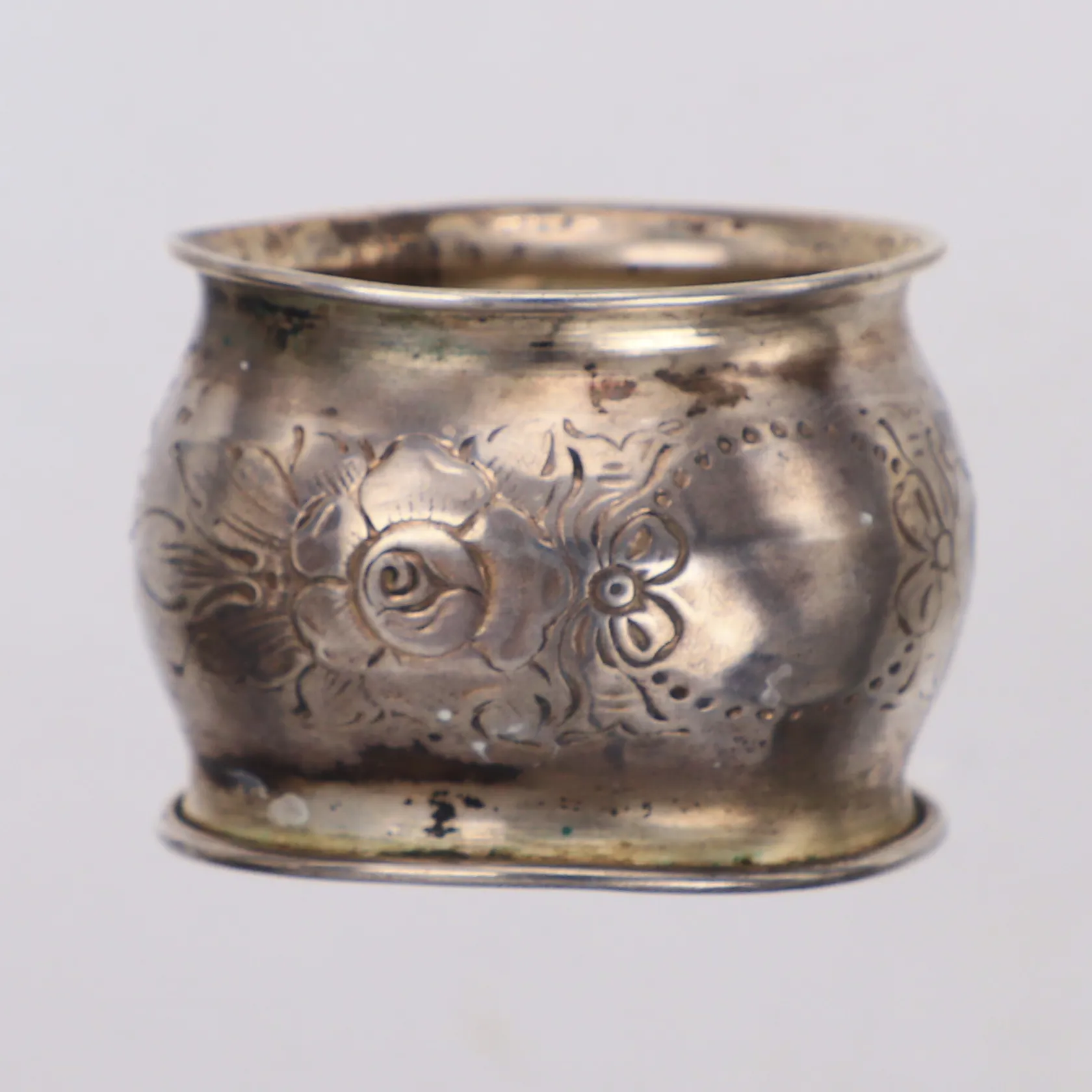 Servettring, bredd 35mm, lätta bucklor, 830/100 silver Vikt: 14,8 g.