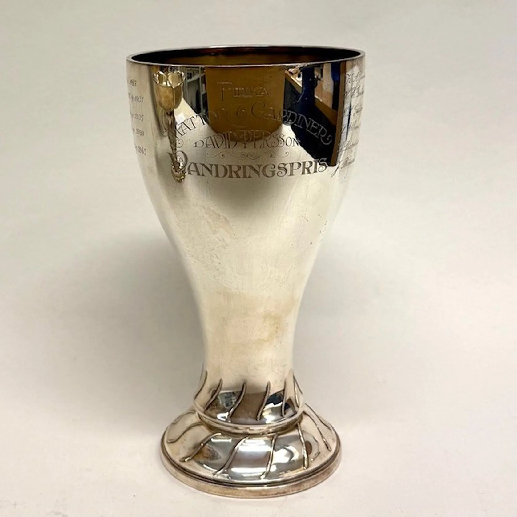 Prispokal, höjd 22cm, gravyr, 830/1000 silver Vikt: 289,5 g.