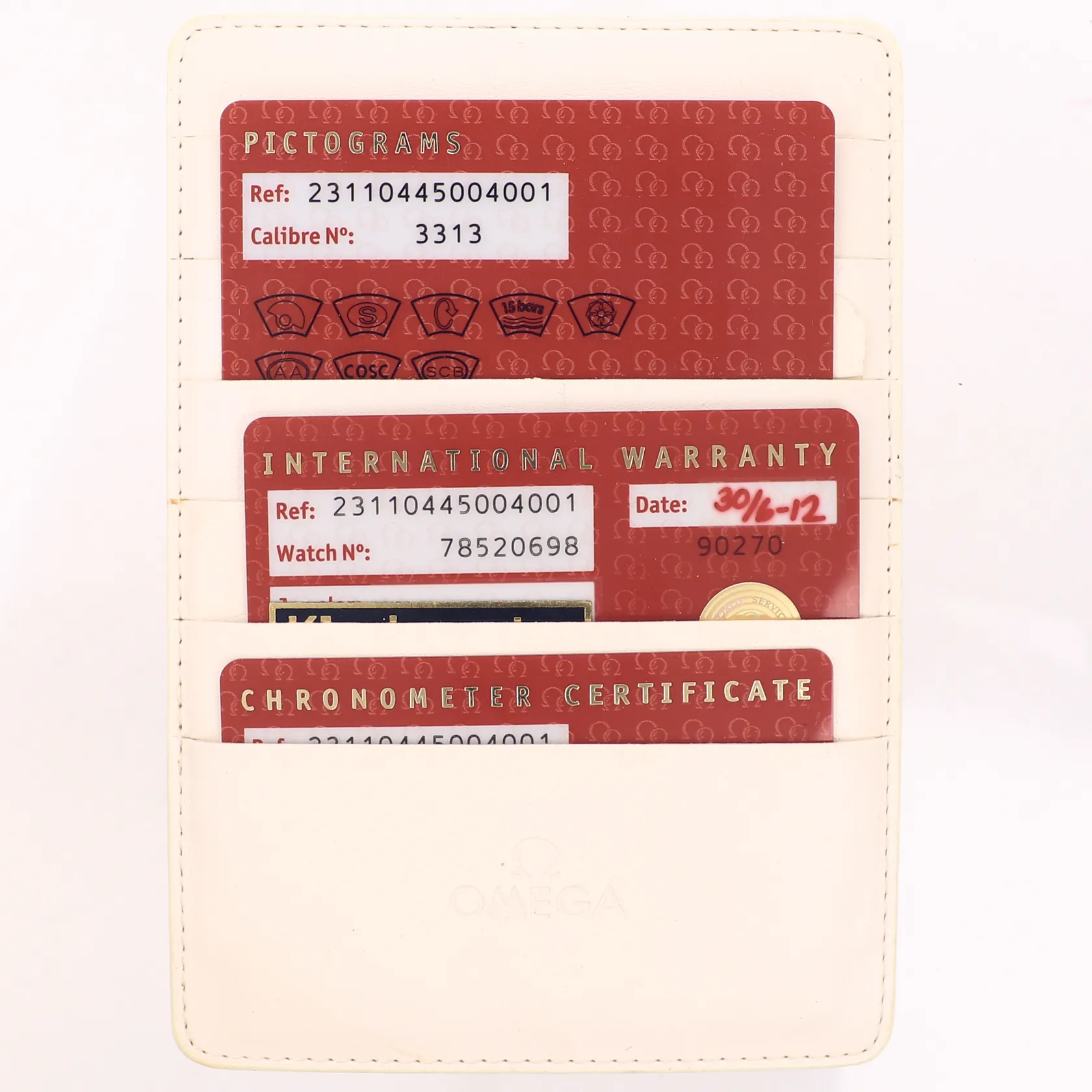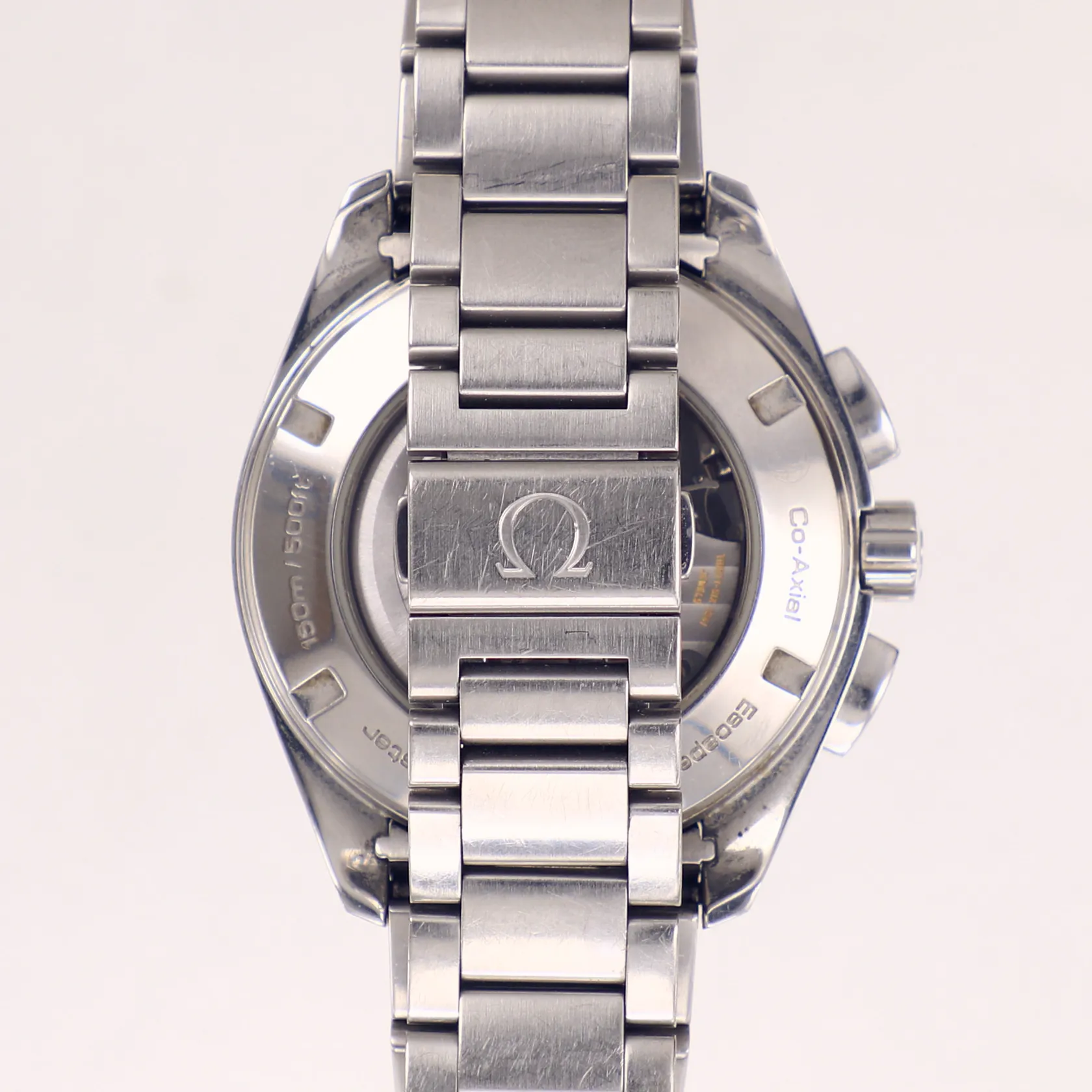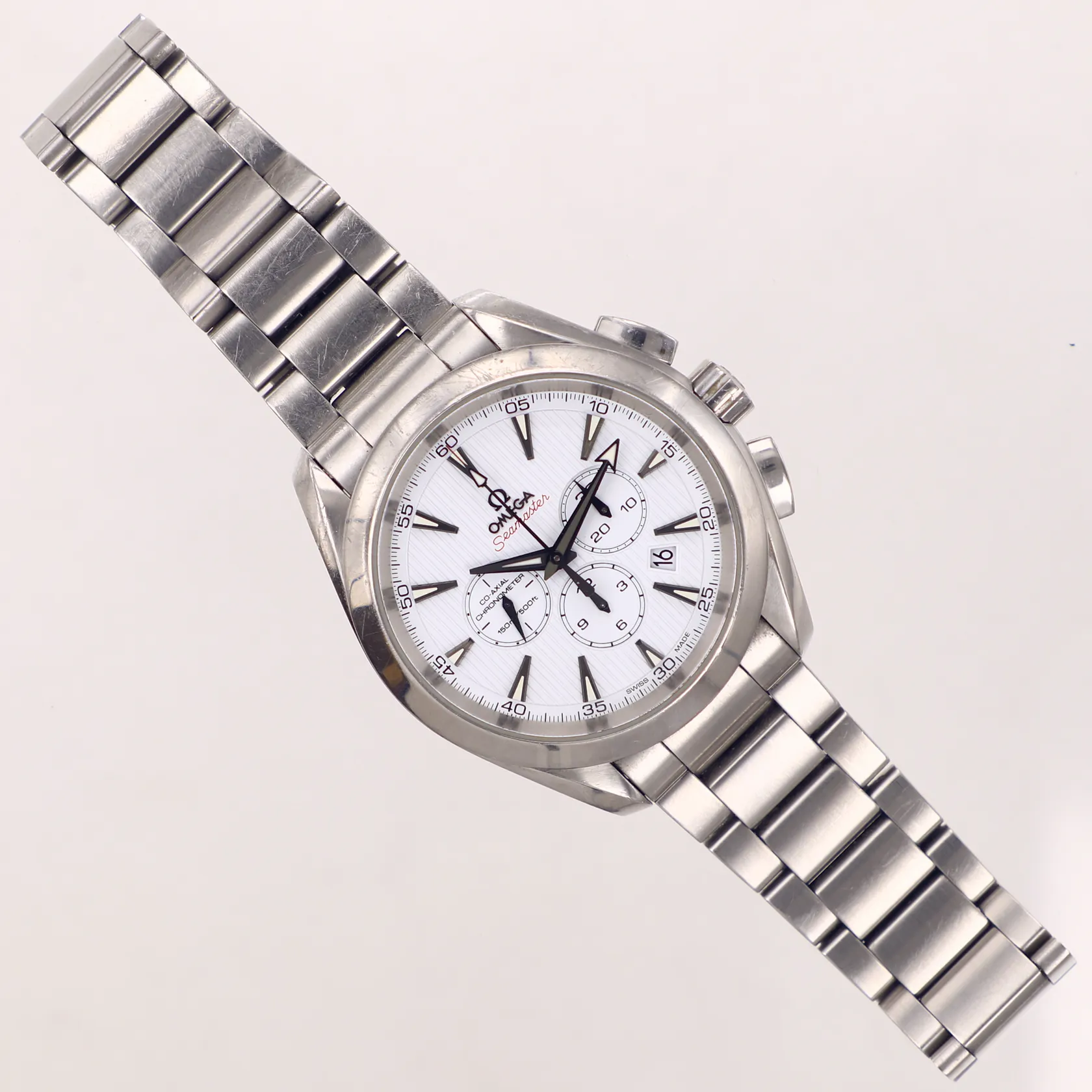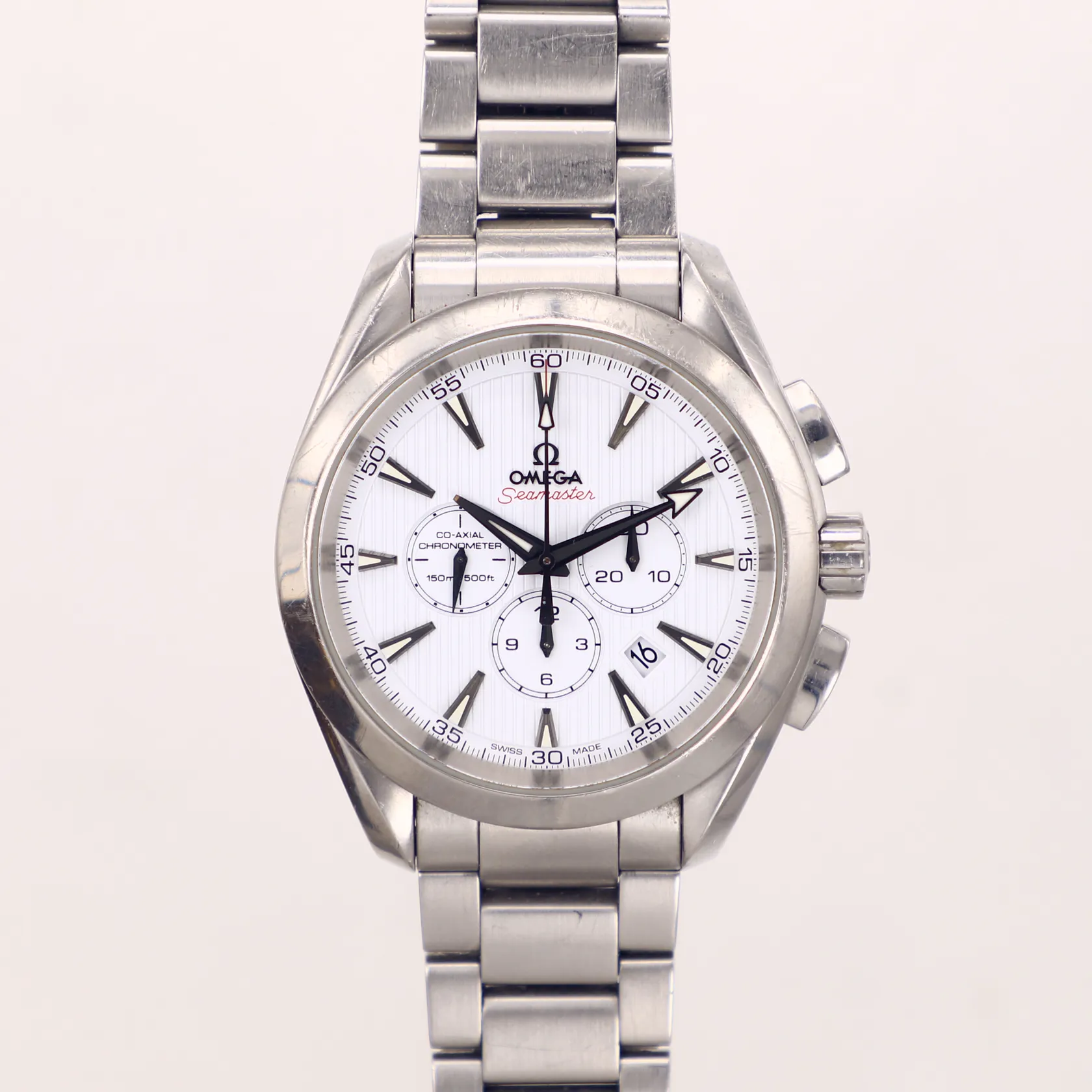 Herrur Omega Seamaster Aqua Terra Co-Axial Chronometer, Escapement, Ø44mm, stål, automat, kronograf, ref 231.10.44.50.04.001, serienr 78520698, cal 3313, vit urtavla, datum, repor på boett, nagg på safirglas, cert Klockmäster 2012, stålarmband med viklås, en extra länkbit, pictogram, korthållare, servicebehov, inga övriga tillbehör