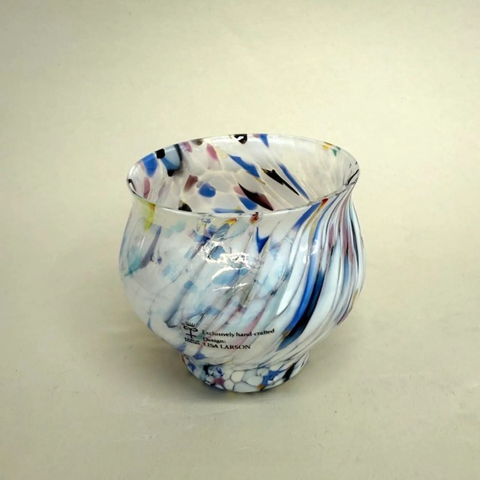 Ljuslykta, Skruf Sweden, Ø7,5cm, höjd 7,5cm, etikettmärkt design Lisa Larson, flerfärgat glas Skickas med paket..
