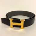 Bälte, Hermès, svart läder, längd 98cm, AA 90, bredd 32mm, stämplat Paris made in France, guldpläterat H-spänne, repor, ett extra hål i bälte, kvitto Stockholm år 2022, två dustbag, kartong.
