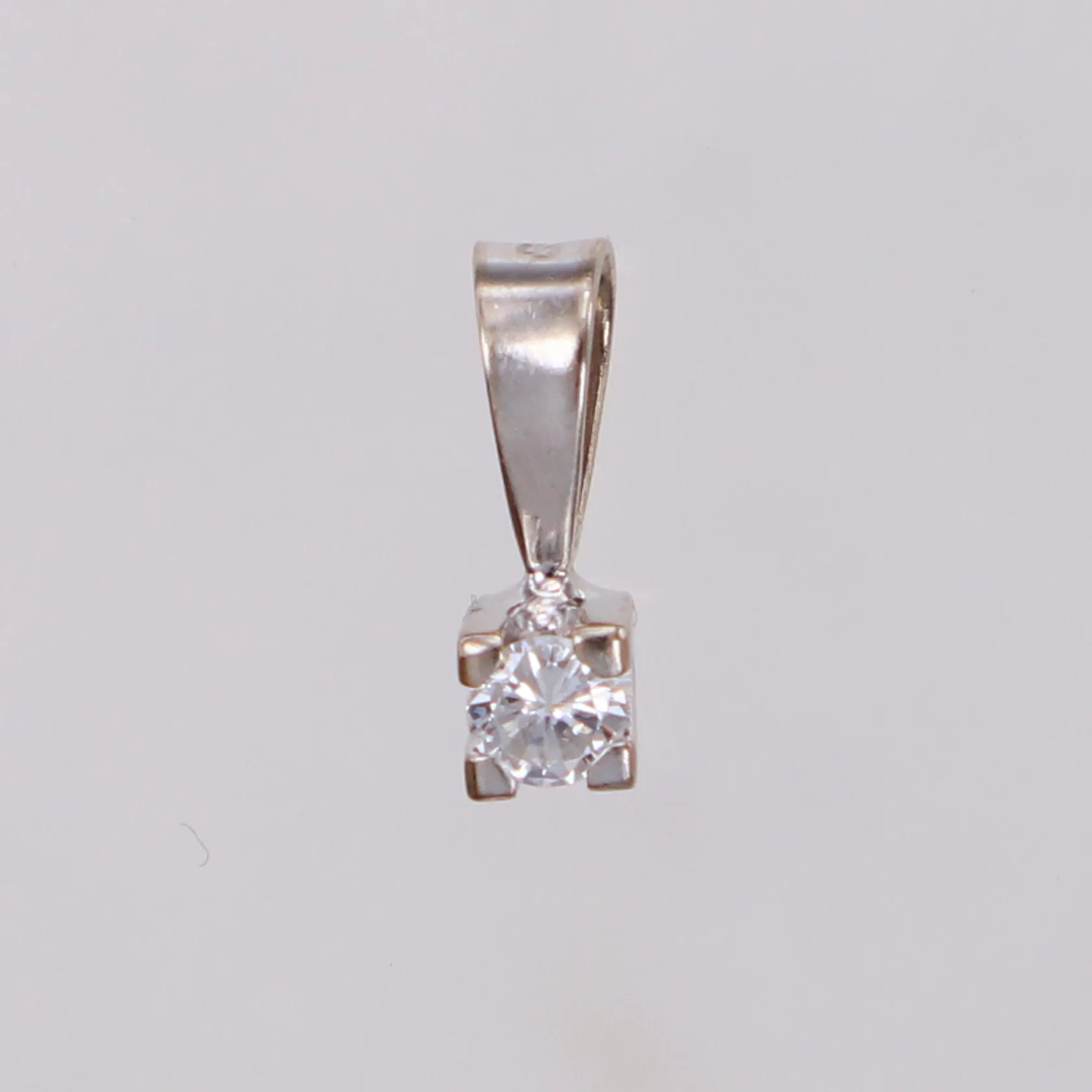 Hänge med diamant 1xca0,10ct, längd10mm, bredd 3,4mm, vitguld, 18K Vikt: 0,7 g.