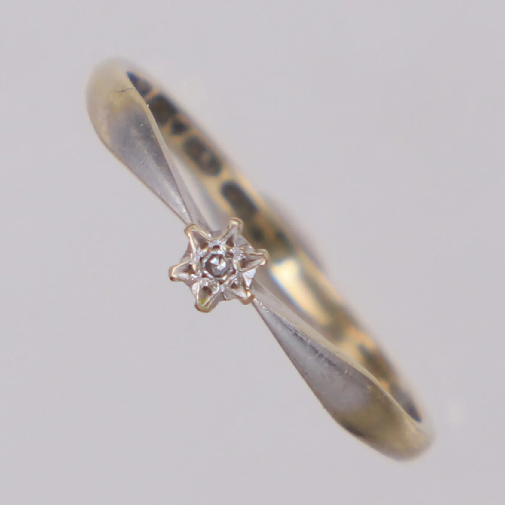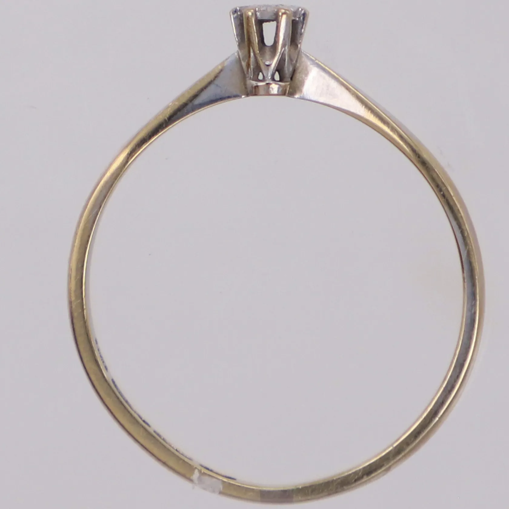 Ring med diamant 1xca0,01ct åttkantslipad, stl 16¾, bredd 1,4-3,2mm, vitguld, behov av rodiering, 18K Vikt: 1,3 g.