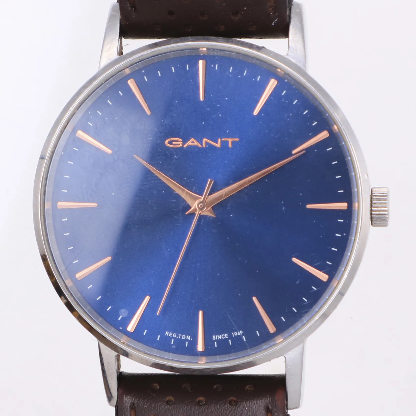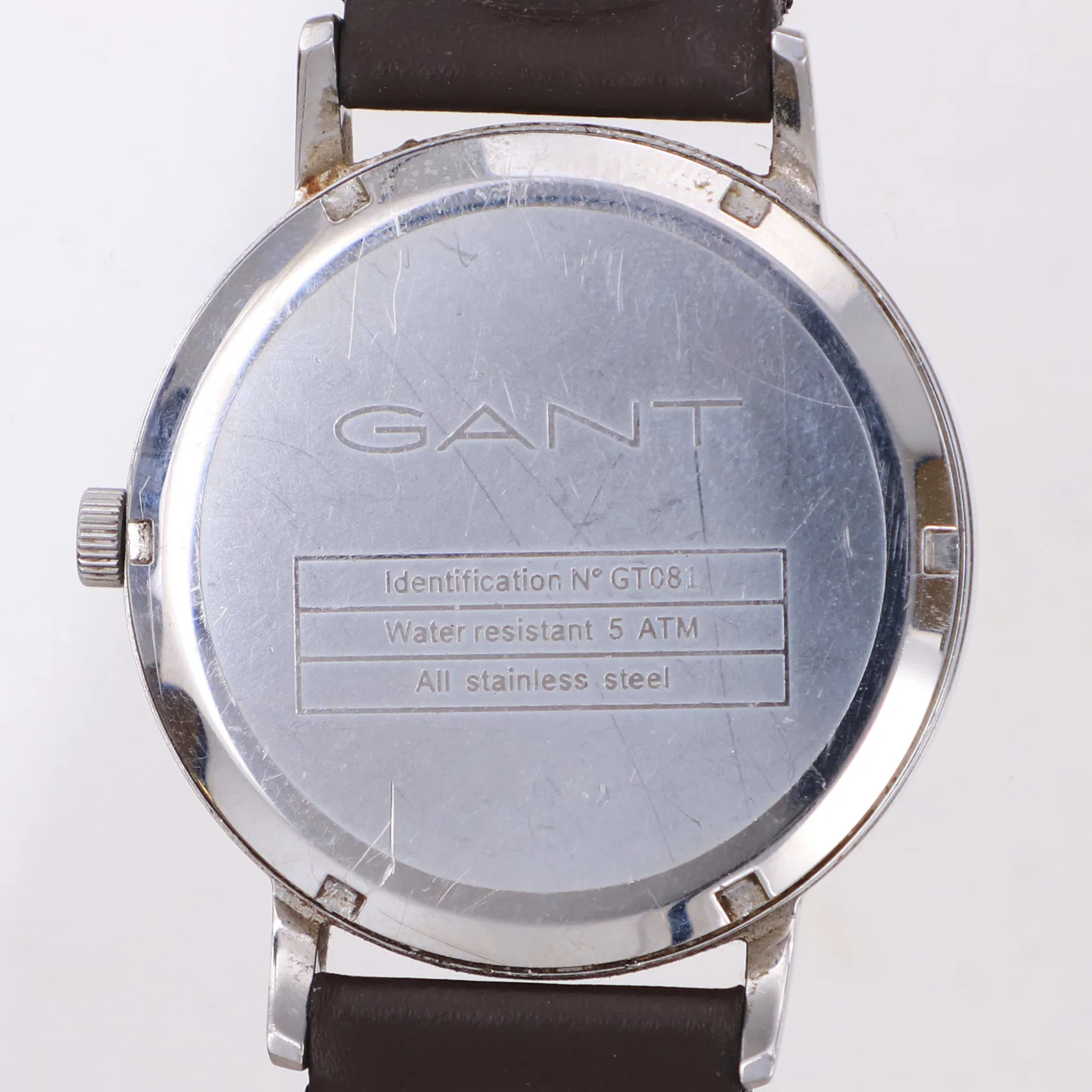 Herrur Gant, quartz, stål, GT081, Ø42mm, läderband ej original, bruksslitage, inga tillbehör
