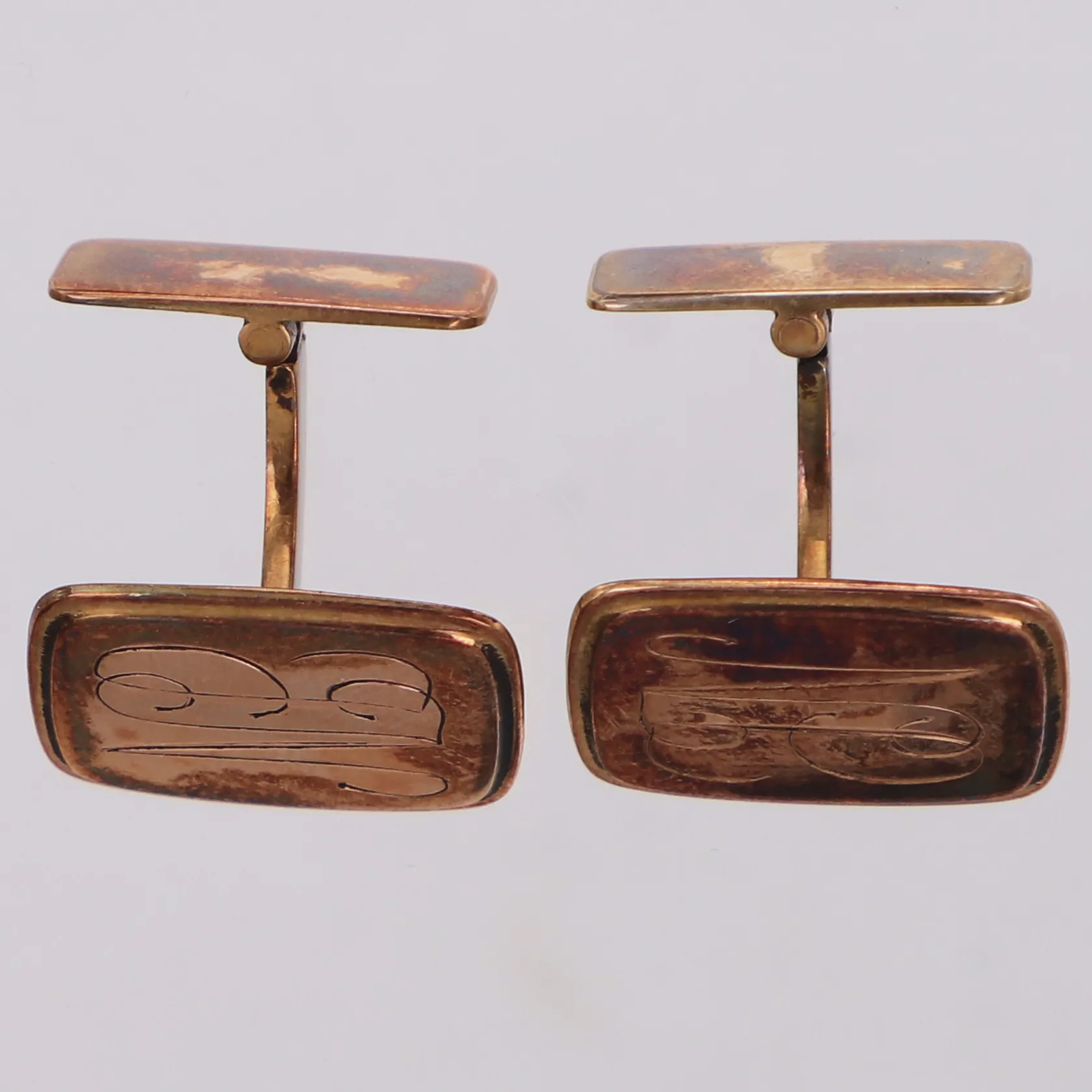 Ett par manschettknappar, längd 22mm, bredd 18mm, monogram, silver 830/1000 Vikt: 10,1 g.