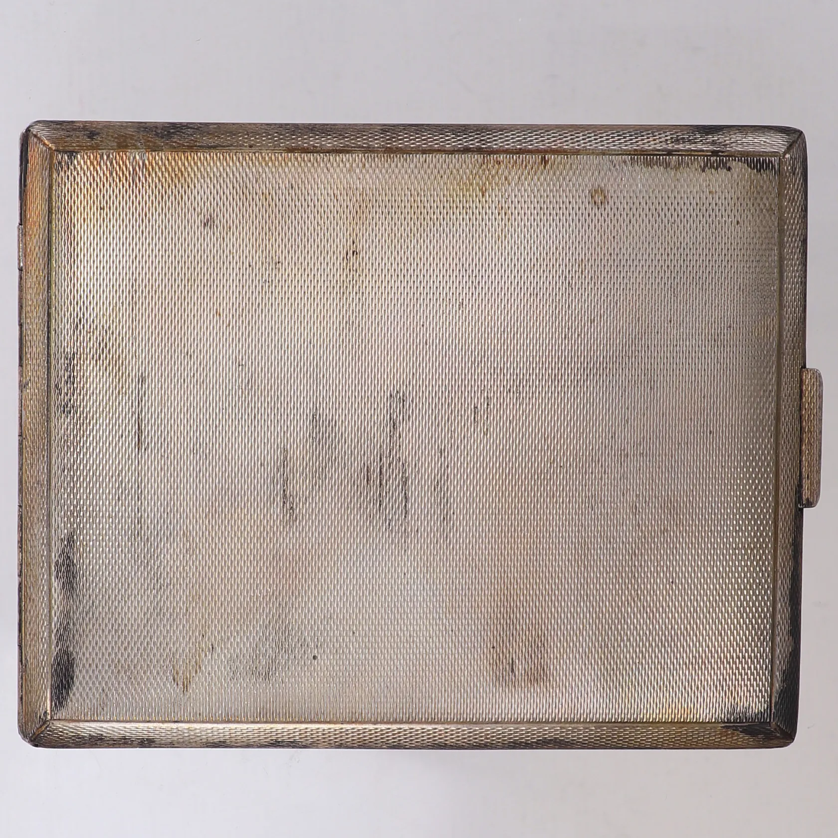 Cigarettetui, 10,3x8cm, gravyr, oxiderad, 925/1000 silver Vikt: 134,5 g.