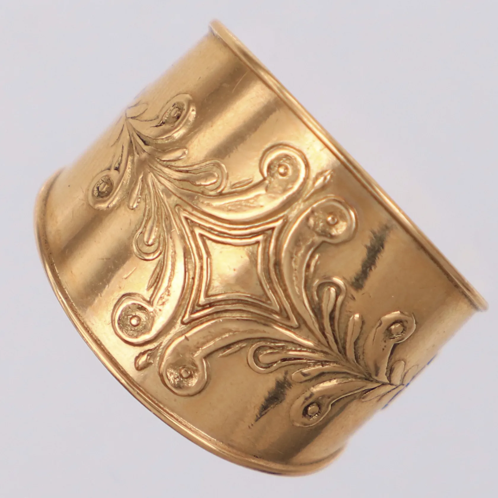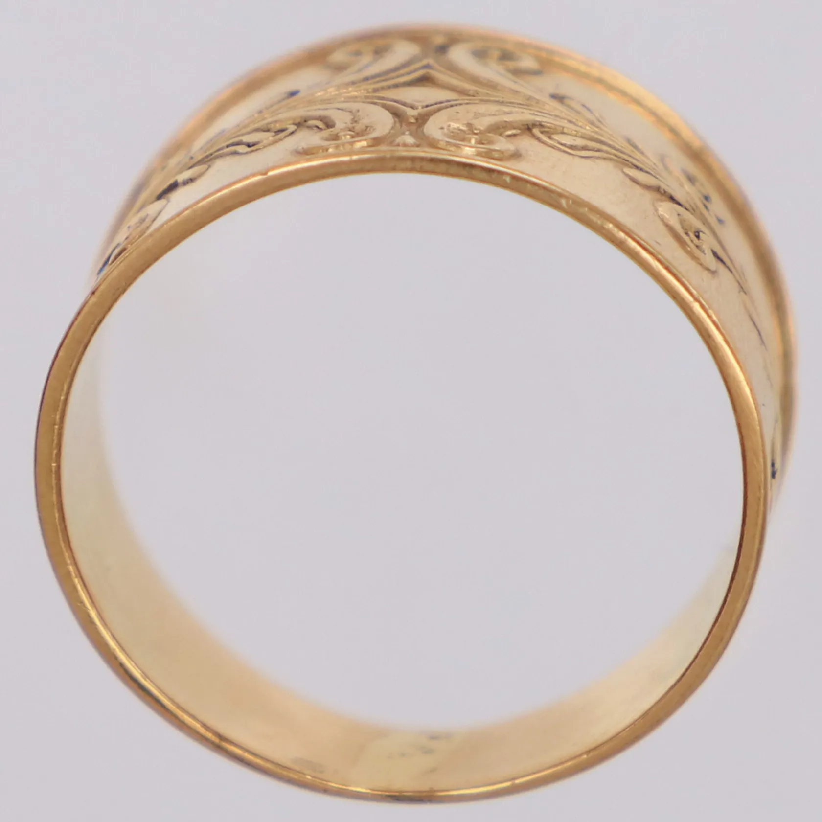 Ring med mönster, stl 18¾, bredd 6,4-16,7mm, år 1987, 18K Vikt: 6,4 g.