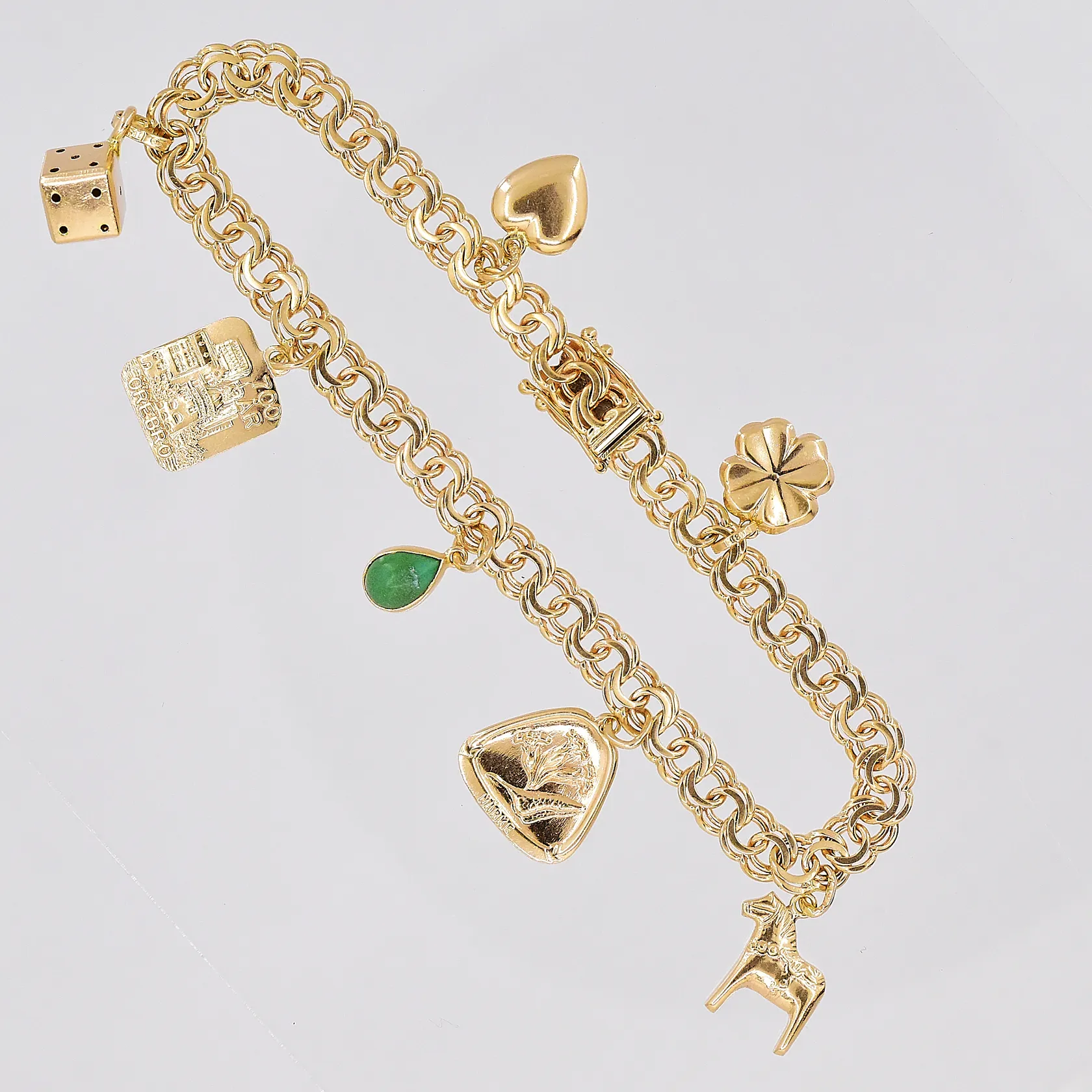 Armband Bismarck, 19cm, bredd 5,4mm, 7 berlocker, 18K Vikt: 15 g.