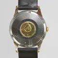 Herrur Omega Constellation " Pie-Pan ", guld på stål, automatisk, 34,5mm, ref: 14393 61 SC, snr: 18310972 ca 1961, Cal. 561, skadat glas, skadad urtavla, troligen utbytt krona, läderband skadat, lås defekt. certifikat.