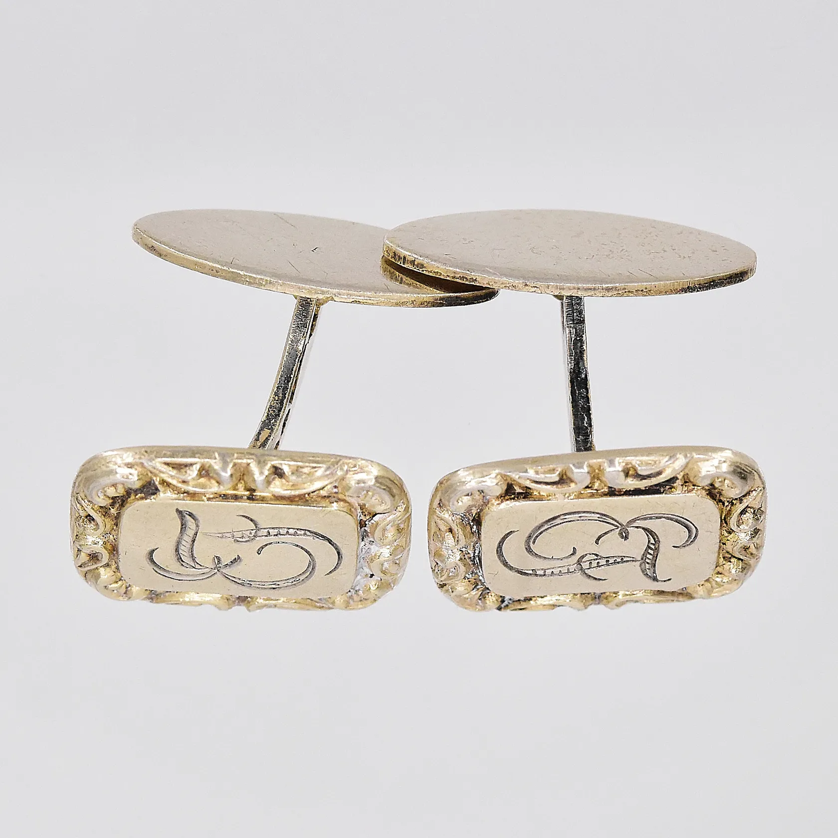 Ett par manschettknappar, ca 15x18mm, monogram, silver 830/1000 Vikt: 11,4 g.