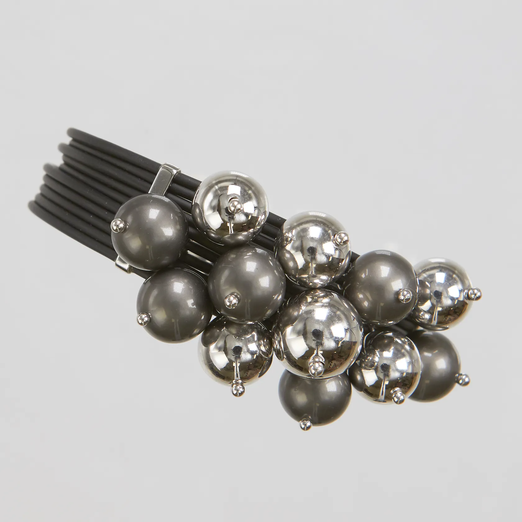 Armband, innermått Ø6-7,5cm, bredd: 14mm, gummi med vitguldsdetaljer, kulor i plast samt vitguld, 18K, bruttovikt 21,3g. Vikt: 21,3 g.