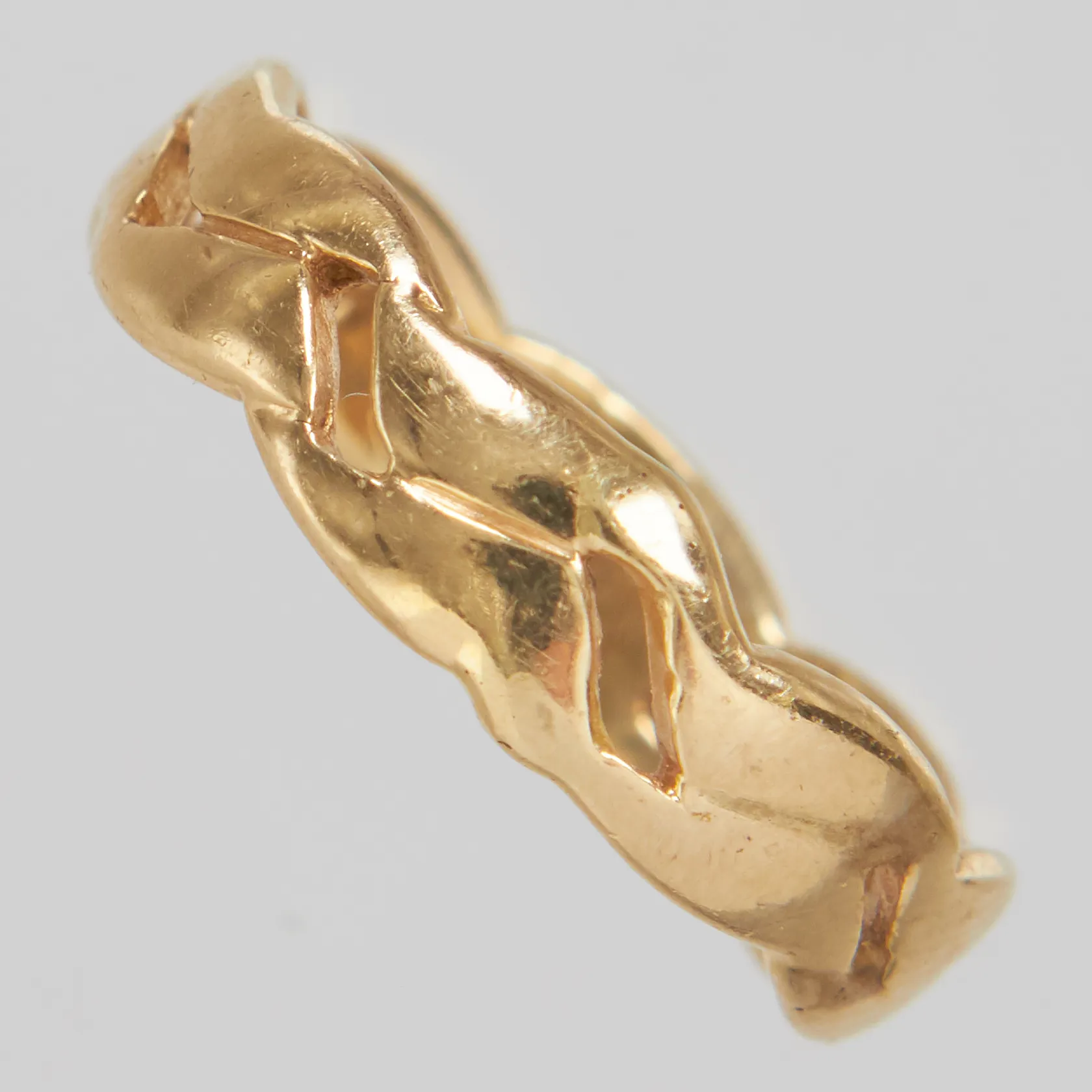 Ring, genombrutet mönster, Ø18¾, bredd:4-5mm, 14K Vikt: 4,2 g.