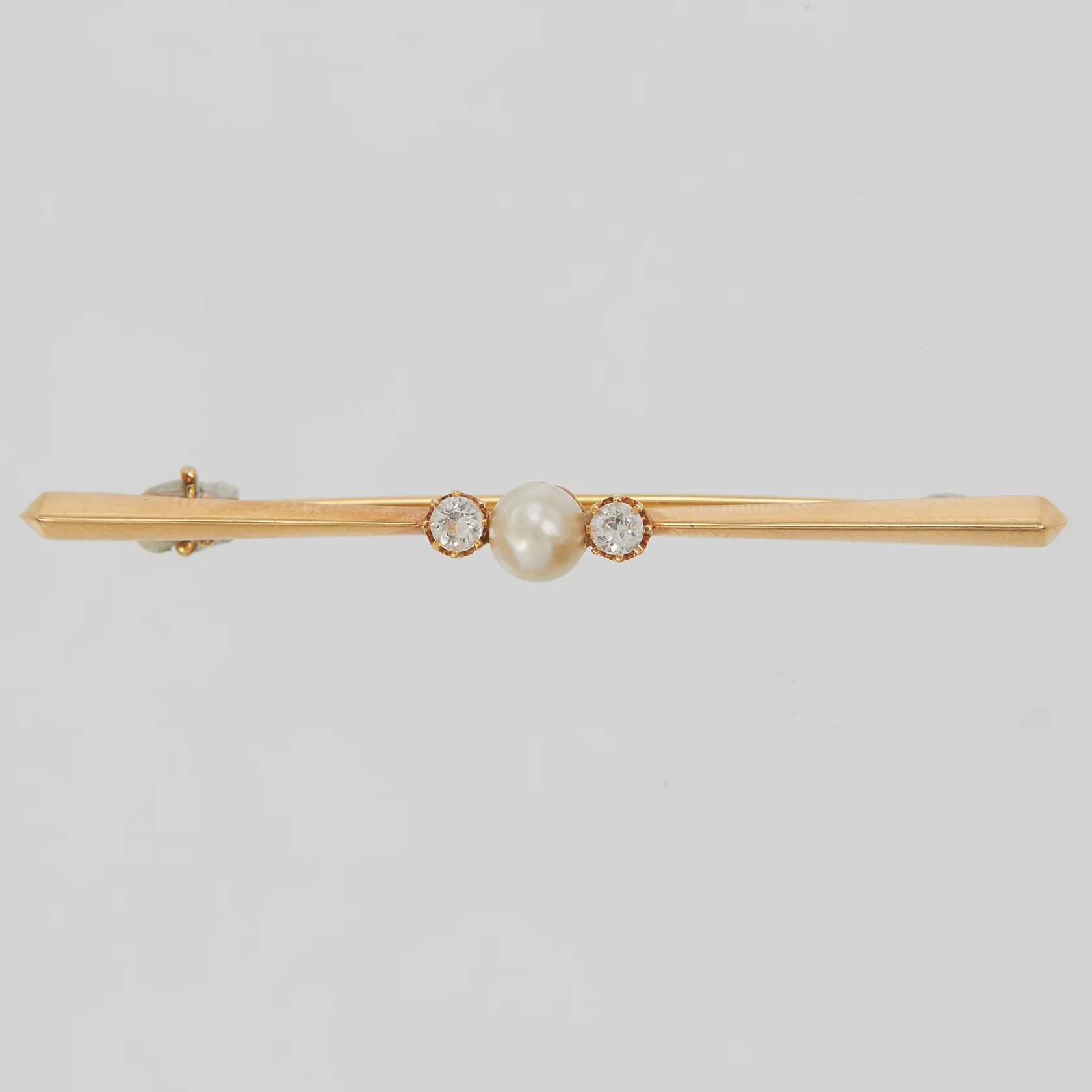 Brosch, halvpärla, vita stenar, 50x5mm, år 1922, 18K. Vikt: 2,5 g.