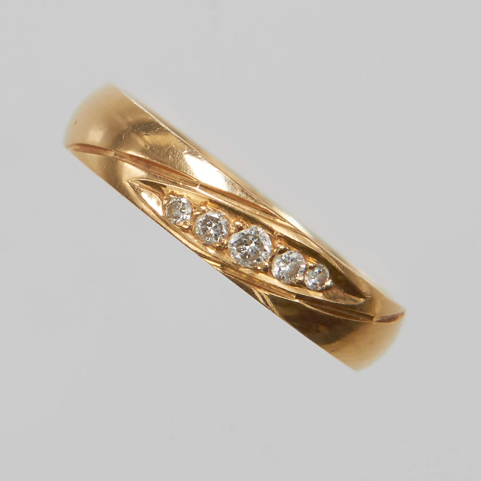 Ring, 5 briljantslipade diamanter 0,10ctv enligt gravyr, Ø16¾, bredd:3,9mm, 18K Vikt: 4,1 g.