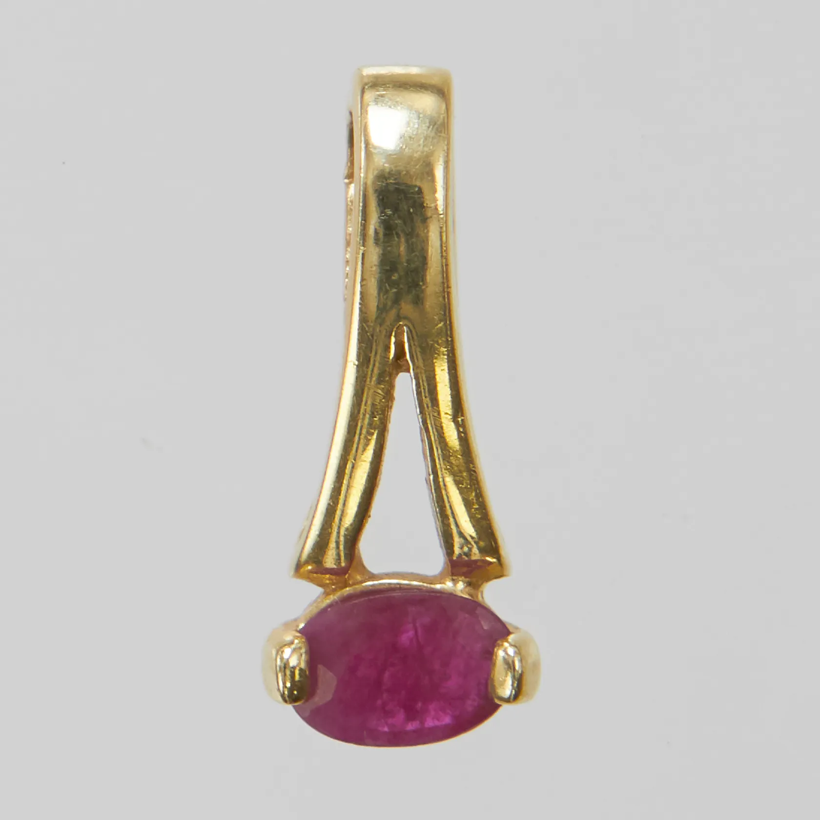 Hänge, rosa sten, 17x7mm, 14K. Vikt: 1,3 g.