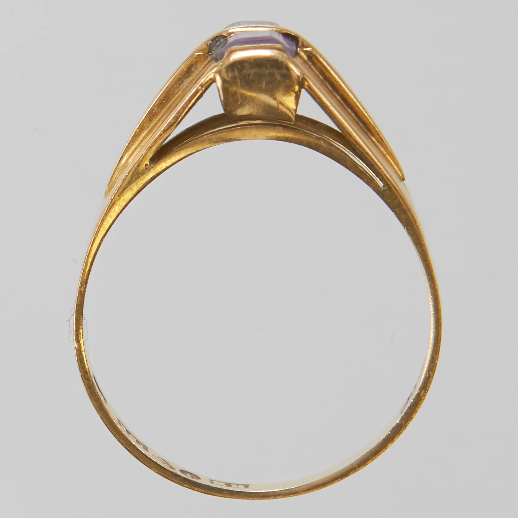Ring med ljuslila stenar, Ø17¾, bredd:2-9mm, Stigbert för Heribert Engelbert, Stockholm 1963, stenarna är skadade, 18K. Vikt: 3,3 g.