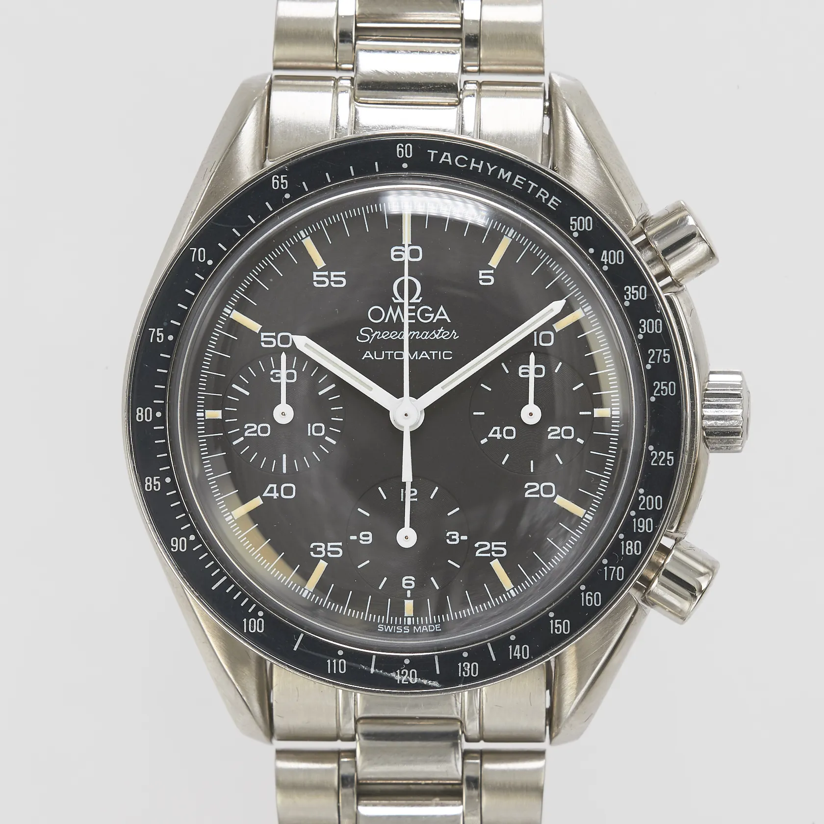 Herrur Omega Speedmaster Reduced, stål, automatisk, 39mm, ref: 175 0032/3, snr: 51686219 ca 1989, Cal. 1140, kronograf, nytt glas, repig ring, stållänk, ref: 1469/811, viklås, service gjord 2025-04-19 med nya visare, krona samt pushers.