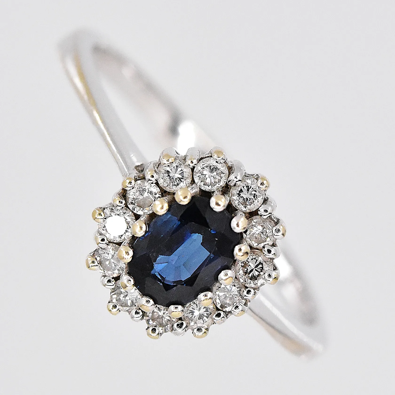 Carmoséring, vitguld, diamanter ca 0,20ctv, safir, stl 19½, SSÄ, 18K Vikt: 3,9 g.