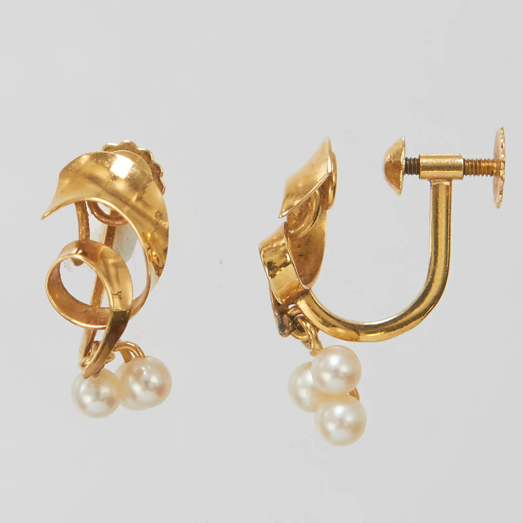 Ett par örhängen med odlade saltvattenspärlor Ø3mm, ca20x7,5mm, skruvclips, 18K. Vikt: 2,1 g.