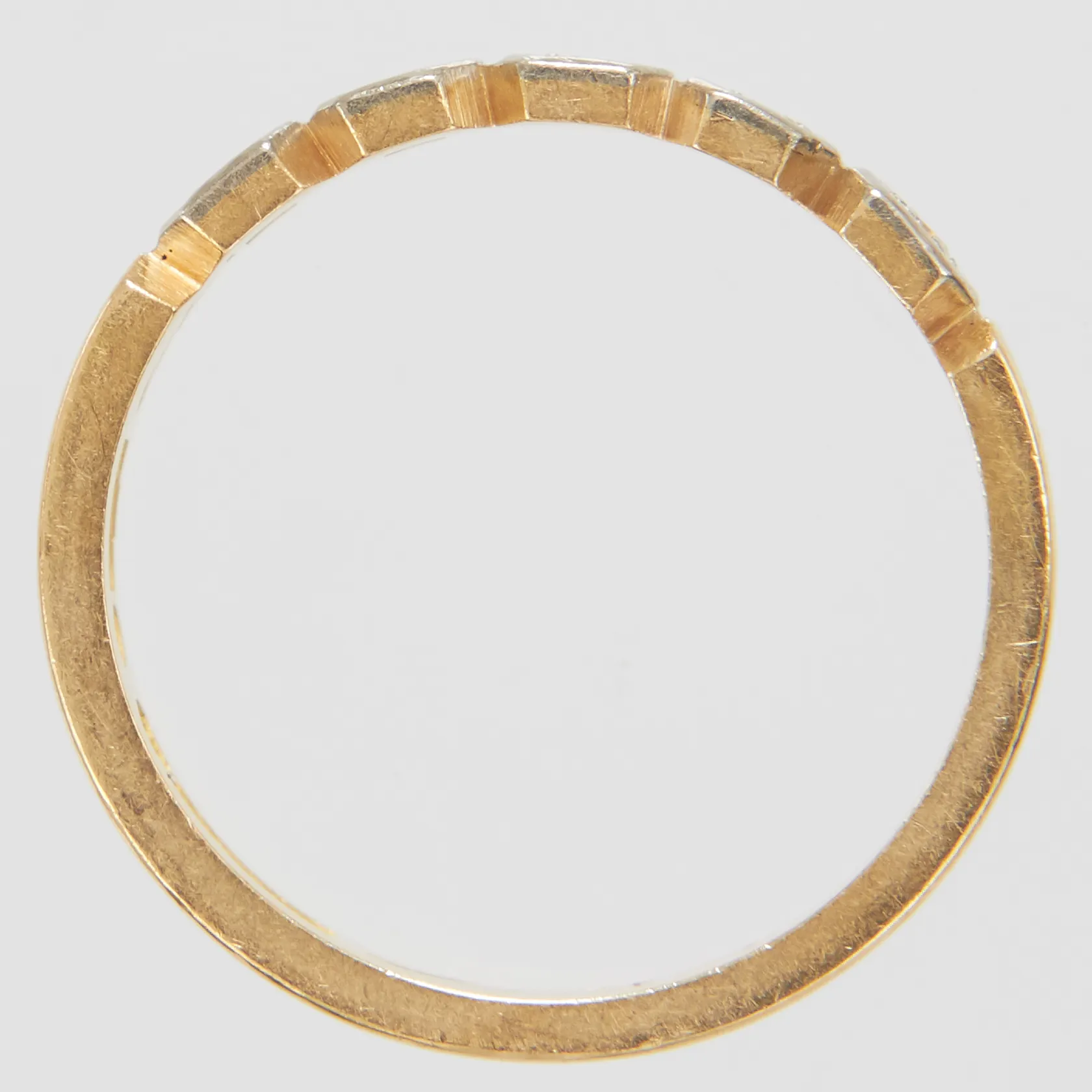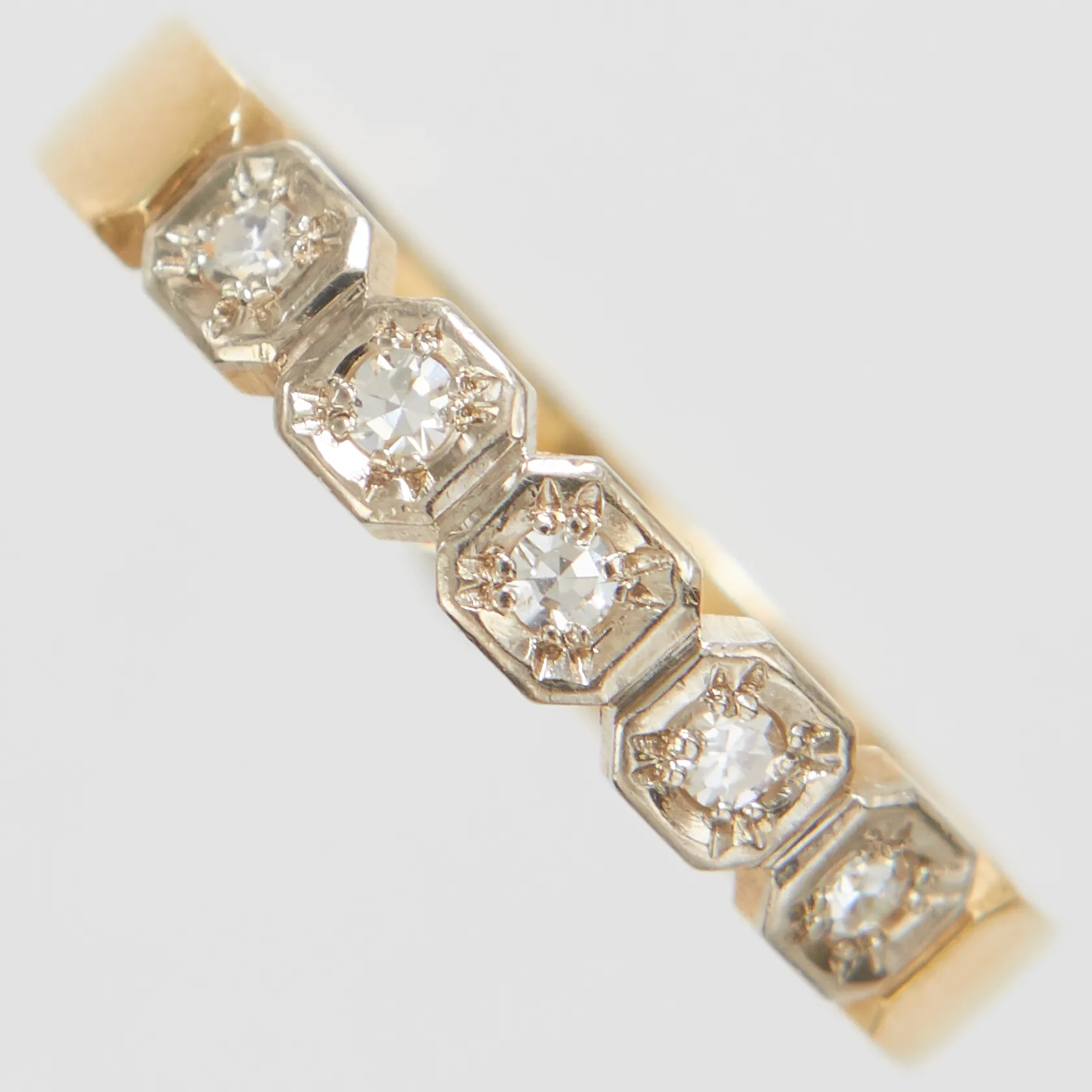 Ring, åttkantslipade diamanter 5xca0,02ct, Ø17, bredd:3,5mm, personlig gravyr, 18K. Vikt: 3,6 g.