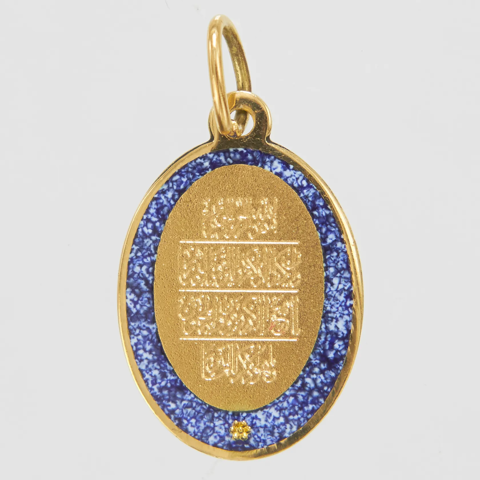 Hänge med emaljdetaljer, ca25x13,5mm, inskription på persiska, 18K Vikt: 1,9 g.