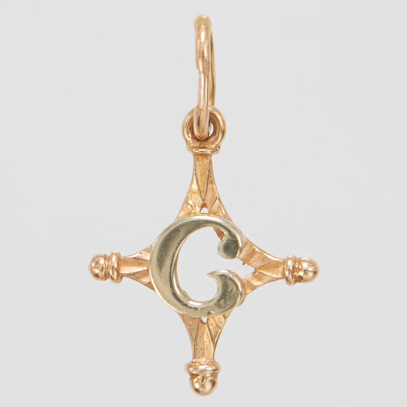 Hänge bokstav C, längd ca 22mm inkl ögla, bredd 13mm, 14K Vikt: 0,8 g.