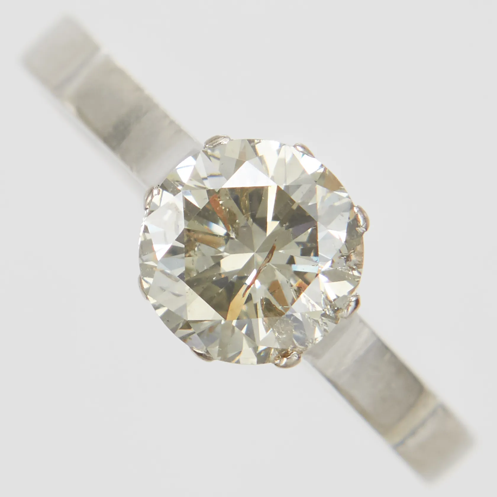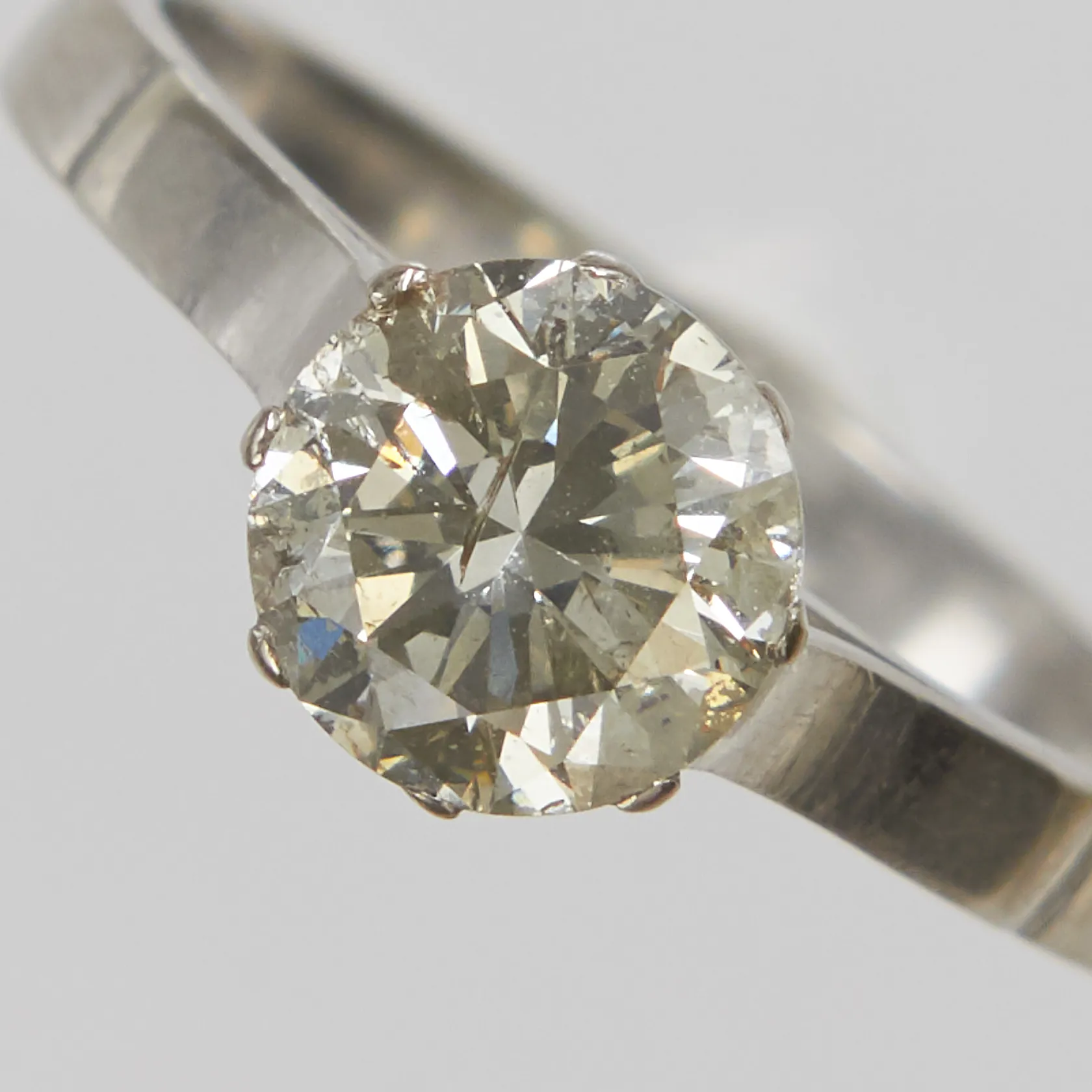 Ring med briljantslipad diamant 1,34ct TCr-Cr/SI2-P1, stl 17½, bredd 2-7mm, Bertil Lundberg Guldsmedsatelje Ab, år 1963, vitguld, 18K Vikt: 3,4 g.