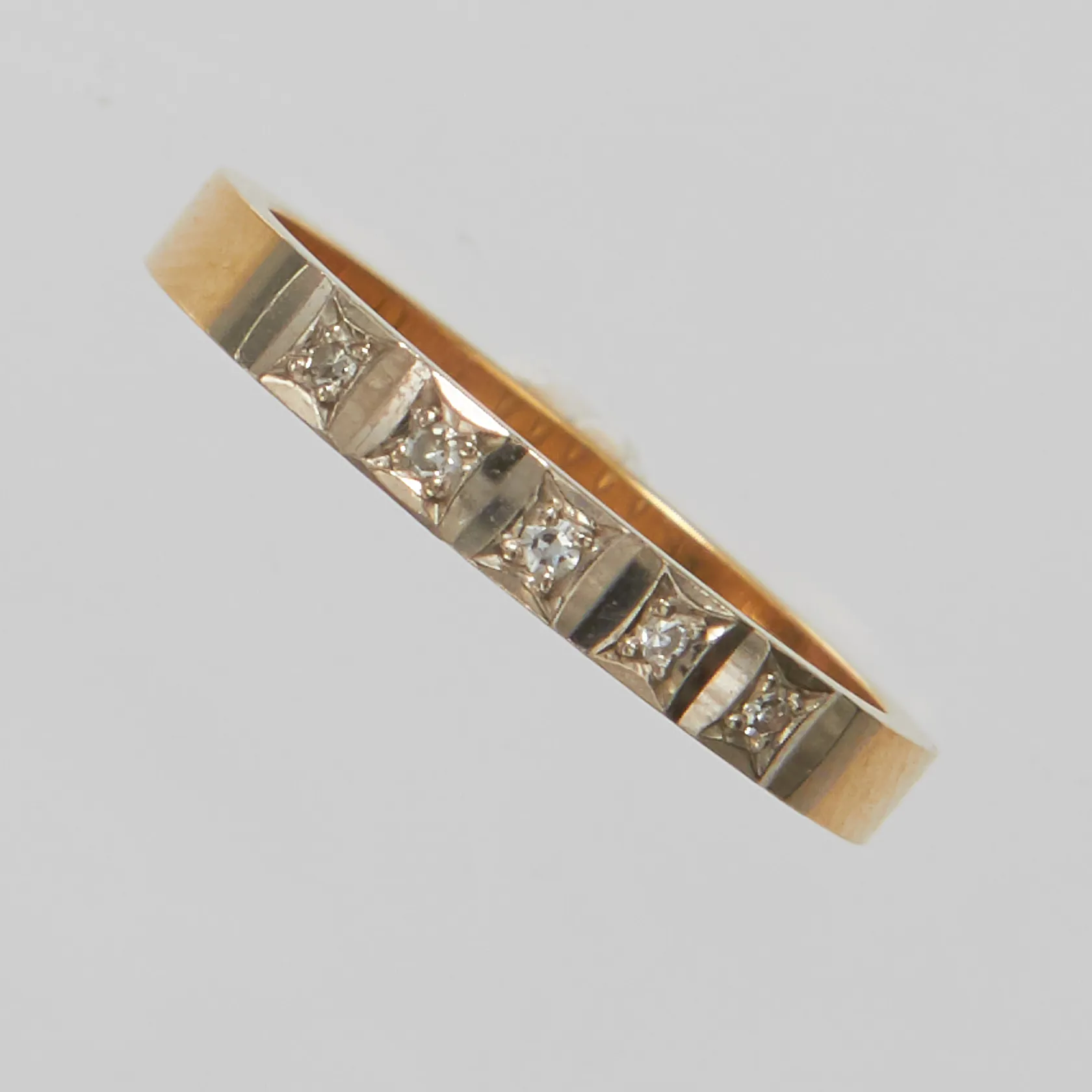 Ring, åttkantslipade diamanter 5xca0,01ct totalt 0,05ctv enligt gravyr, Ø17½, bredd:2,8mm, Göteborg 1989, 18K. Vikt: 3,1 g.