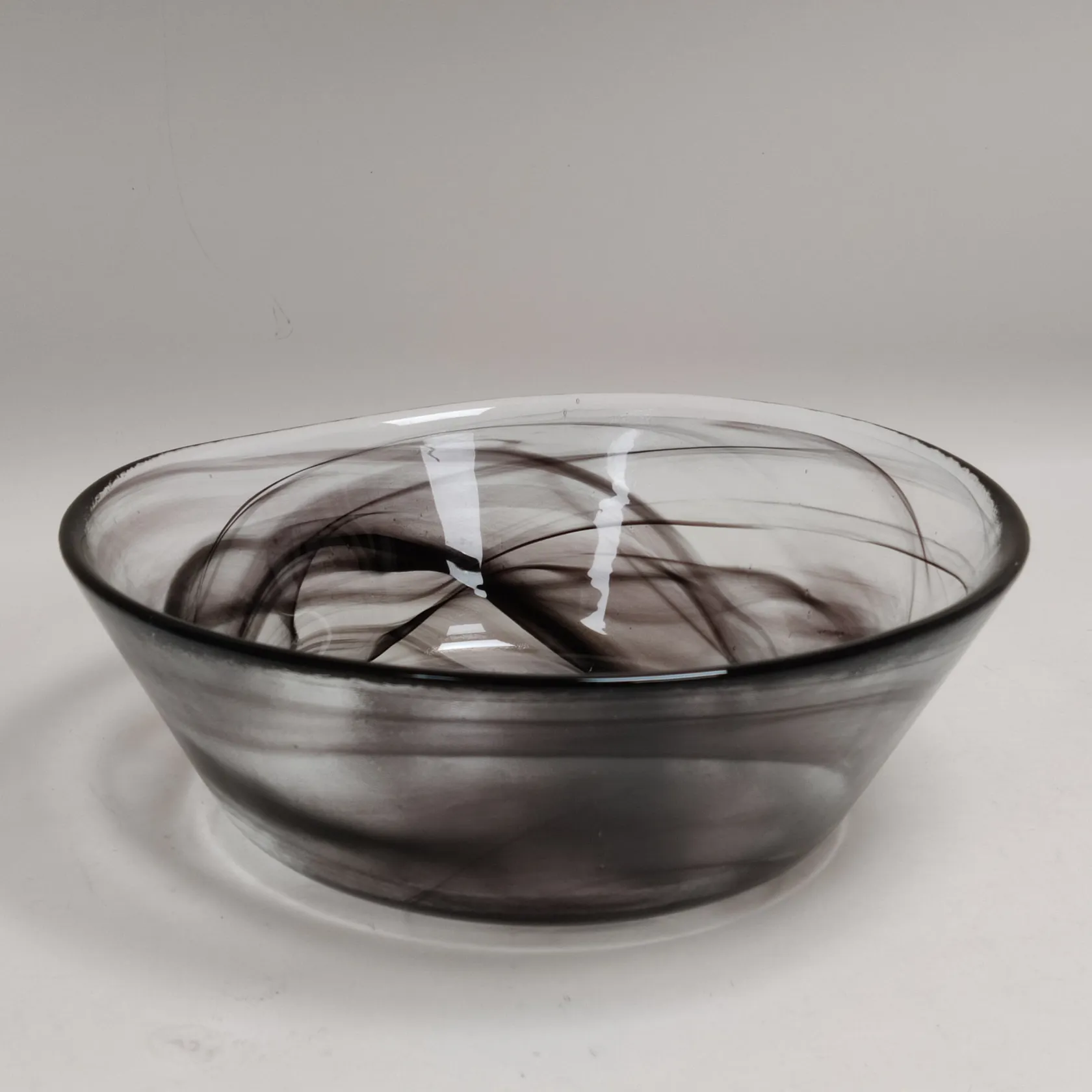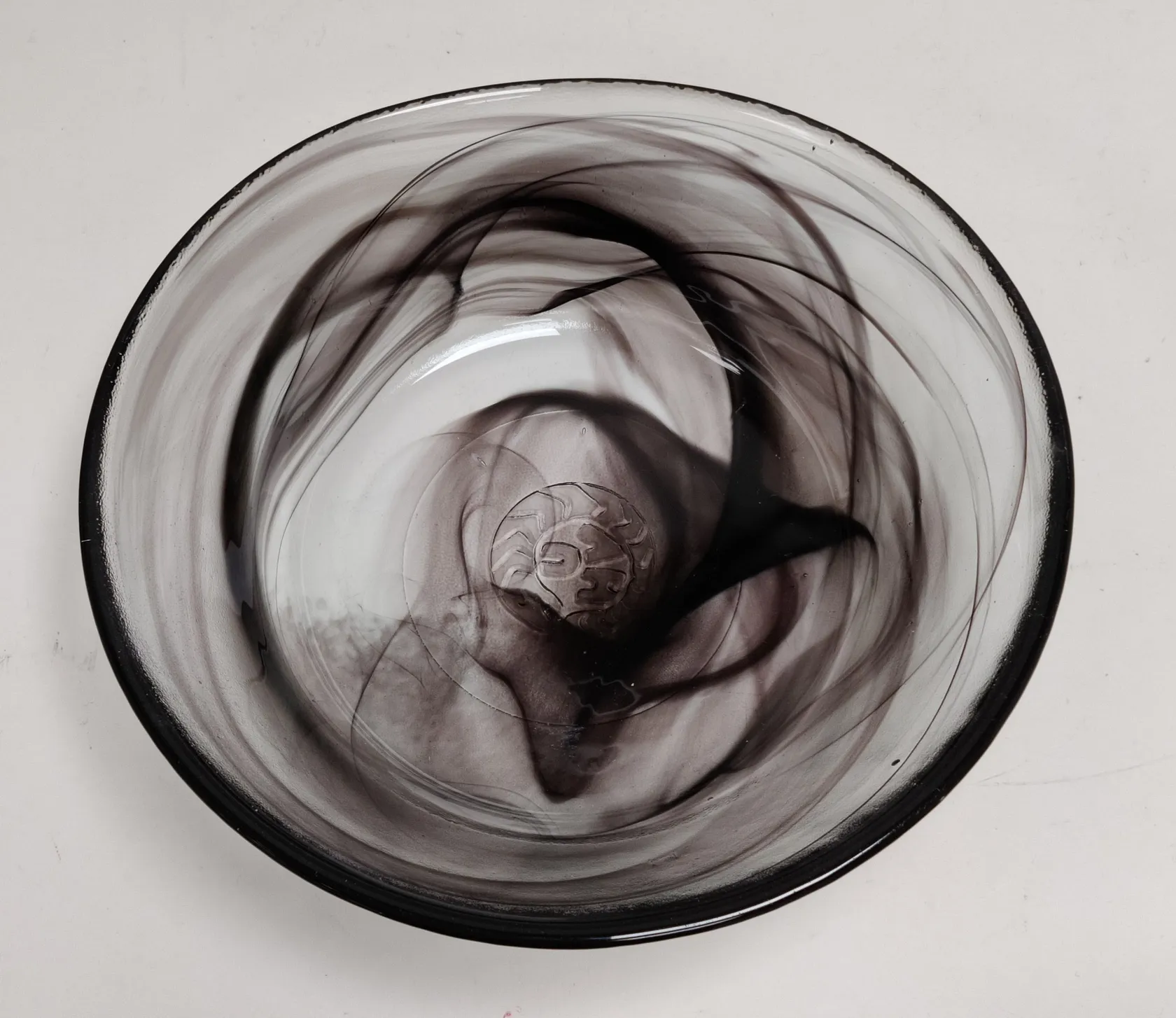 Skål, Mine formgiven av Ulrica Hydman Vallien för Kosta Boda, Ø25cm, höjd:8,5cm, klarglas med inslag av rökbrunt, stämpelmärkt i botten. Skickas med postpaket.