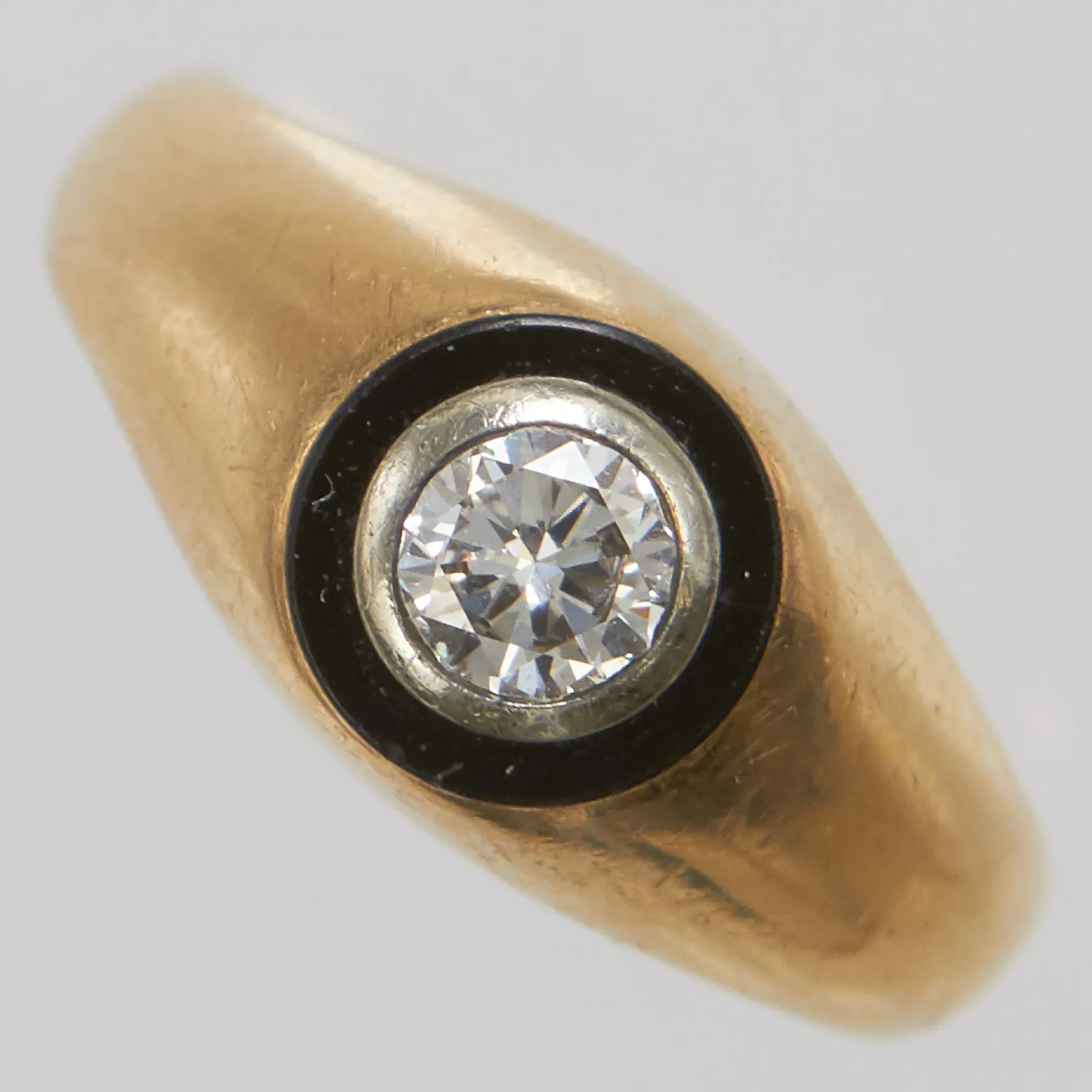 Ring, briljantslipad diamant ca 0,32ct, ca TCr/VS, onyx, Ø18, bredd: 4-9,5mm, Birks, Kanada,14K Vikt: 7,6 g.