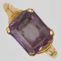 Ring med syntetisk färgväxlande safir, Ø20¼, bredd: 2,5-9mm, 18K Vikt: 3,6 g.