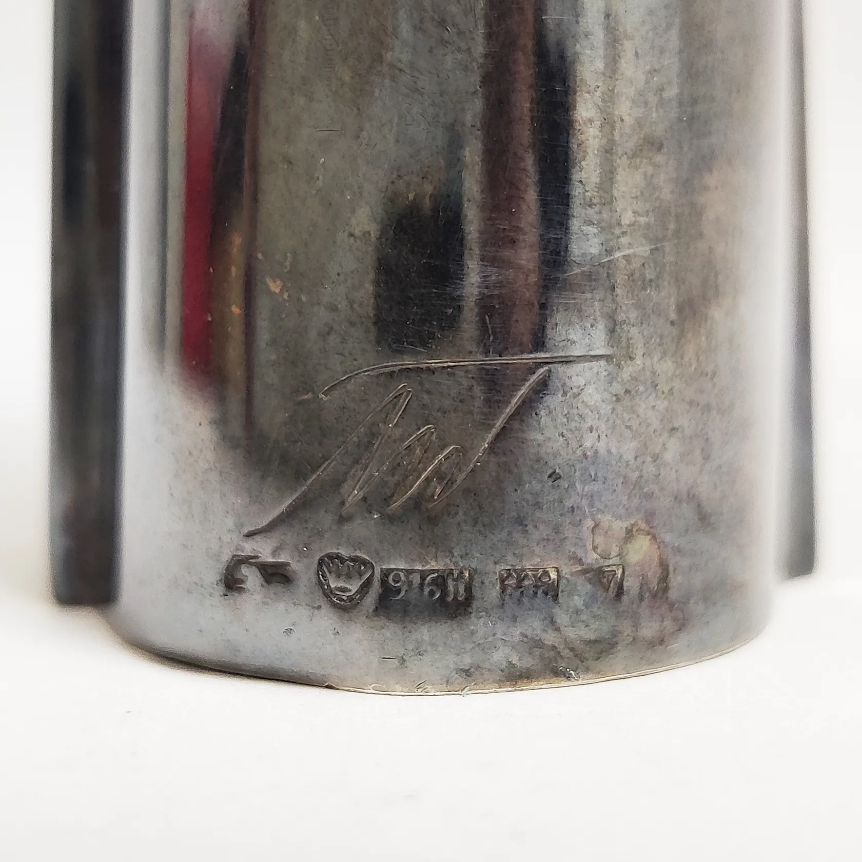 Silvervas, höjd:195mm, Ø40mm, Tapio Wirkkala, signerad, Finland, fylld botten, mindre bucklor nedtill, 916/1000, bruttovikt:209,5g. Vikt: 209,5 g.