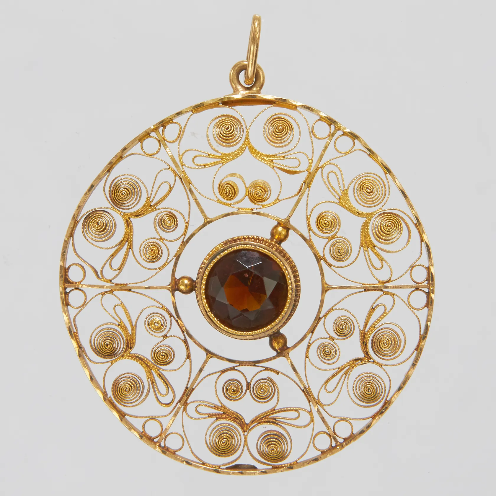 Hänge, citrin, 45x36mm, J.Petterssons Eftr, Stockholm 1919, 18K. Vikt: 5,8 g.