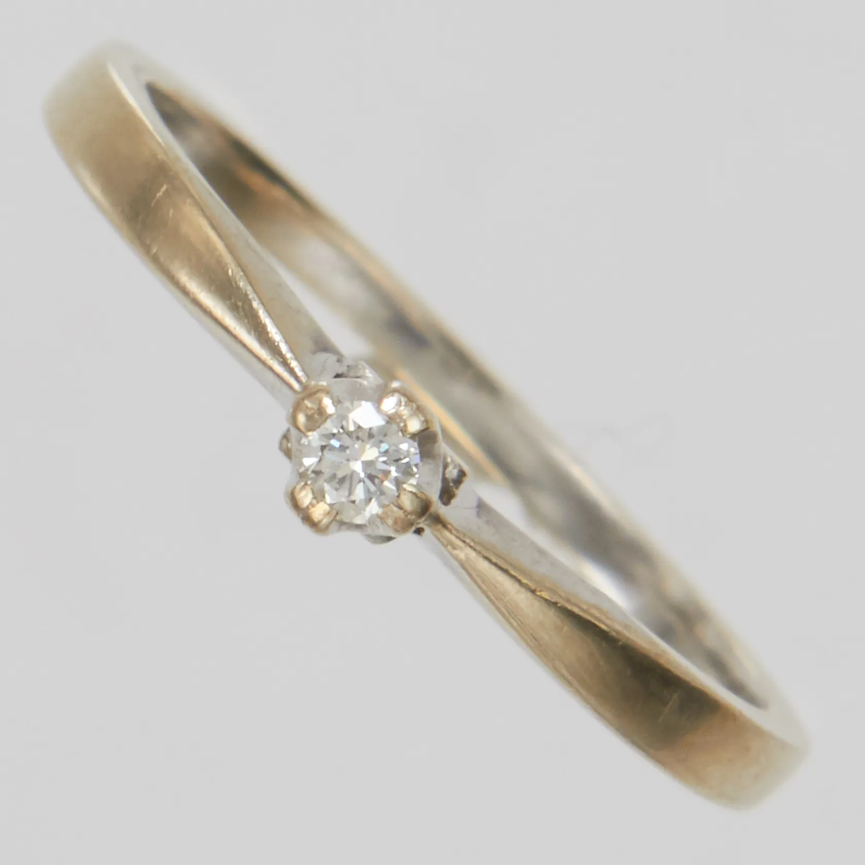 Ring, briljantslipad diamant ca 0,05ct, stl 17½, bredd 1,2-3,2mm, GHA, vitguld, 18K Vikt: 2,1 g.