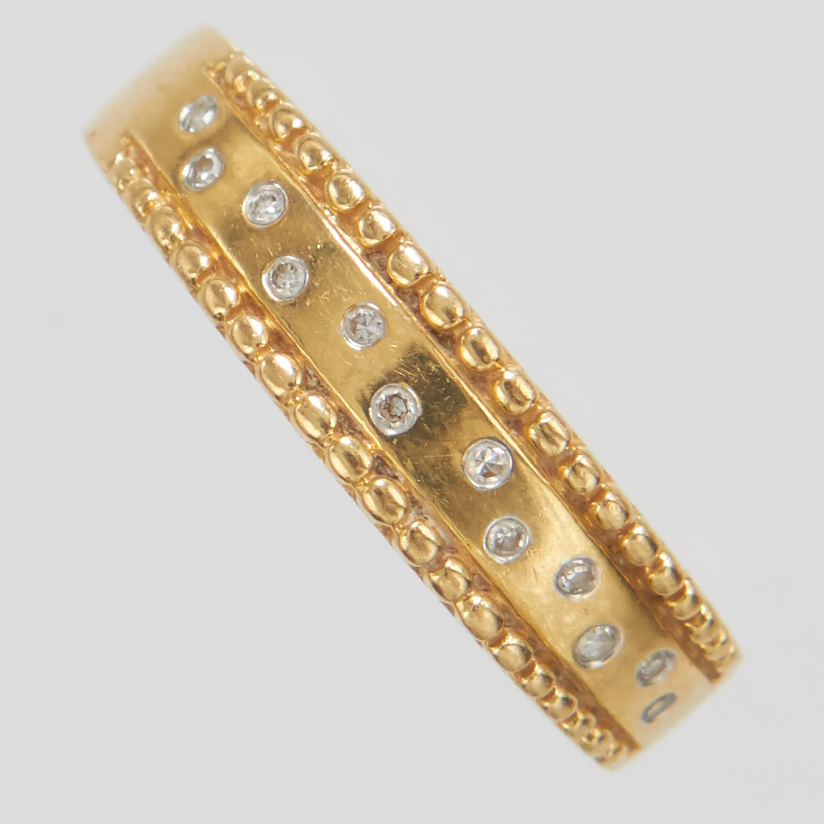 Ring, åttakantslipade diamanter 12 x ca 0,005ct, stl 17½, bredd 3-5mm, GHA, skev skena, 18K Vikt: 2,9 g.