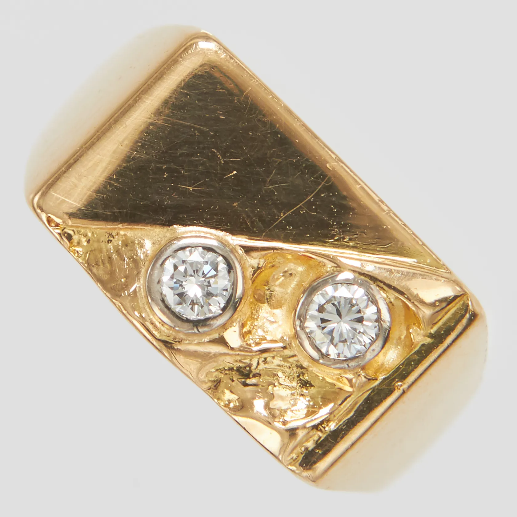 Klackring, diamanter 2 x ca 0,10ct, Ø18½, bredd: 2,7-10,6mm, 18K Vikt: 9 g.