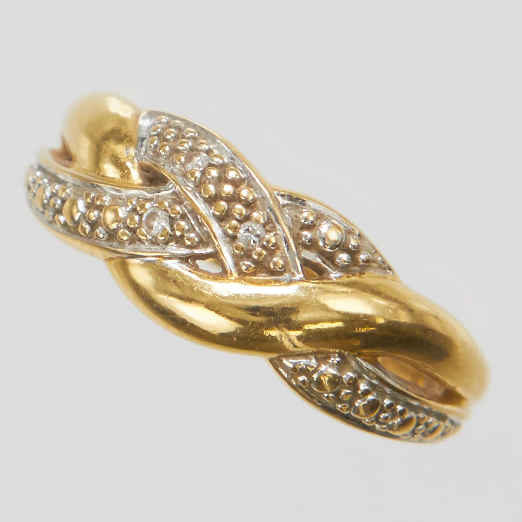 Ring, diamanter 3 x ca 0,005ct, tvåfärgad, stl 16½, bredd ca 2-7mm, 18K Vikt: 2,5 g.