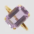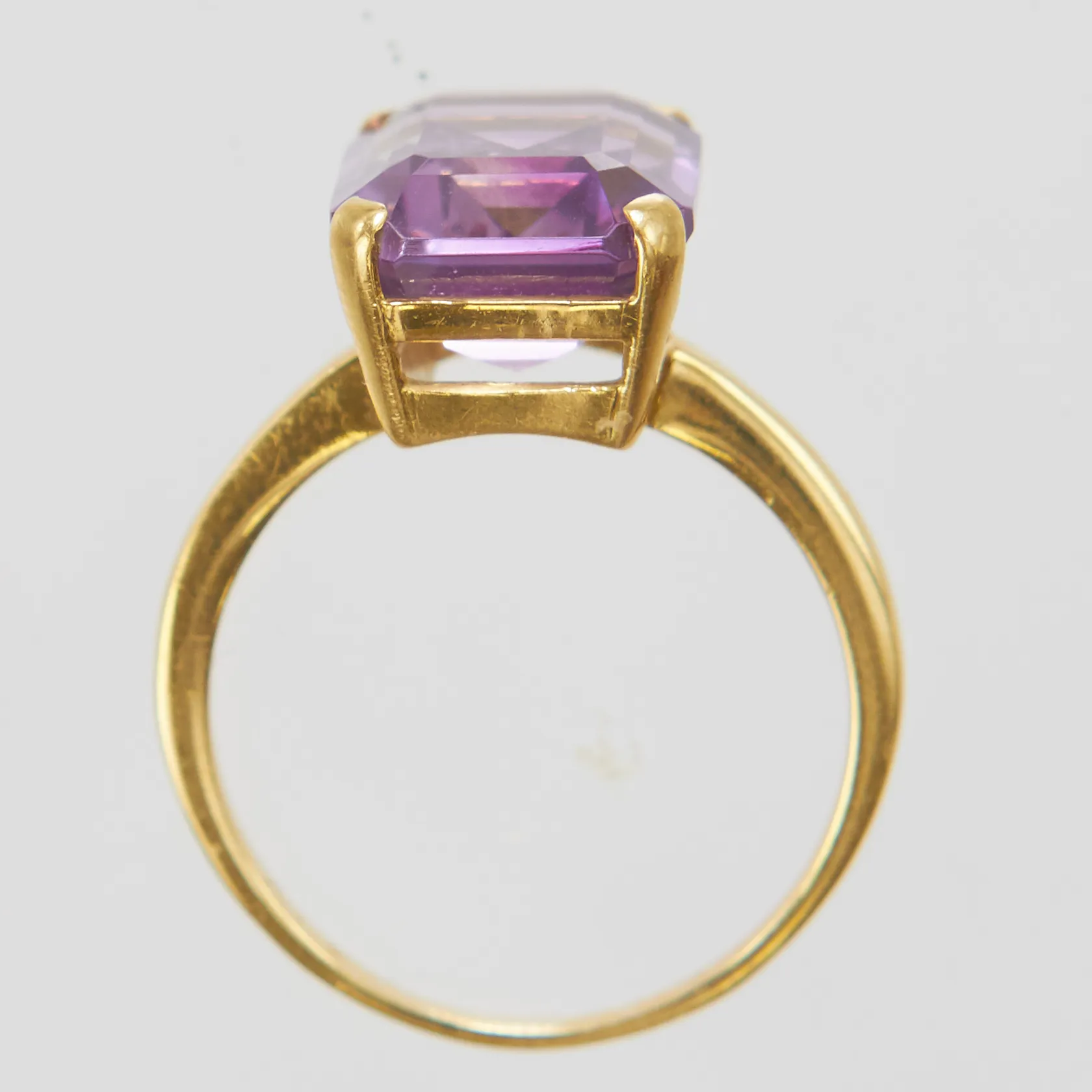 Ring, ametist, stl 17½, bredd 1,5-14mm, Guldfynd, 18K, bruttovikt: 4,5g. Vikt: 4,5 g.