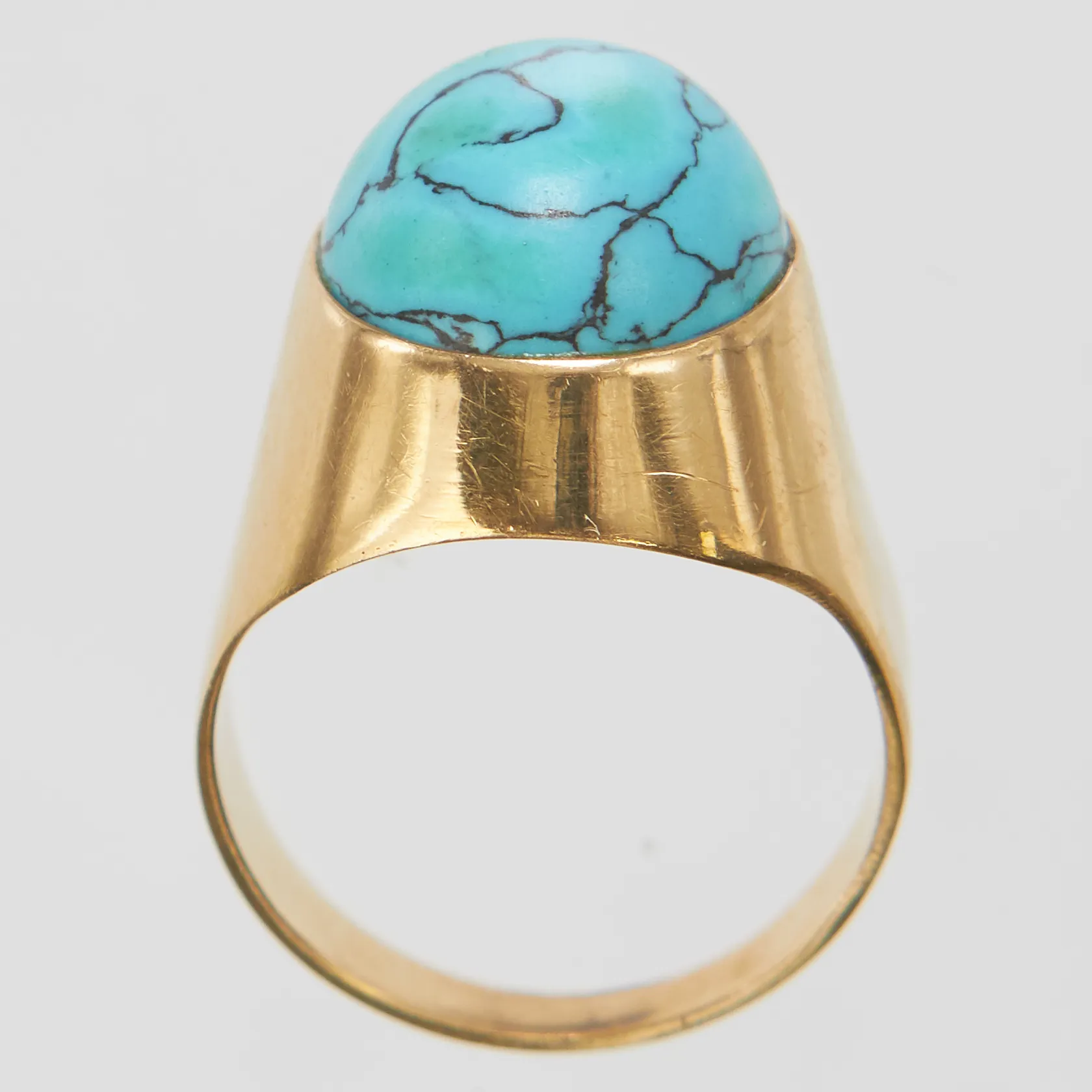 Ring, turkos, stl 17, bredd 3-16,5mm, Svedboms Guldsmeds Ab Hov, år 1970, 18K, bruttovikt: 6,1g Vikt: 6,1 g.