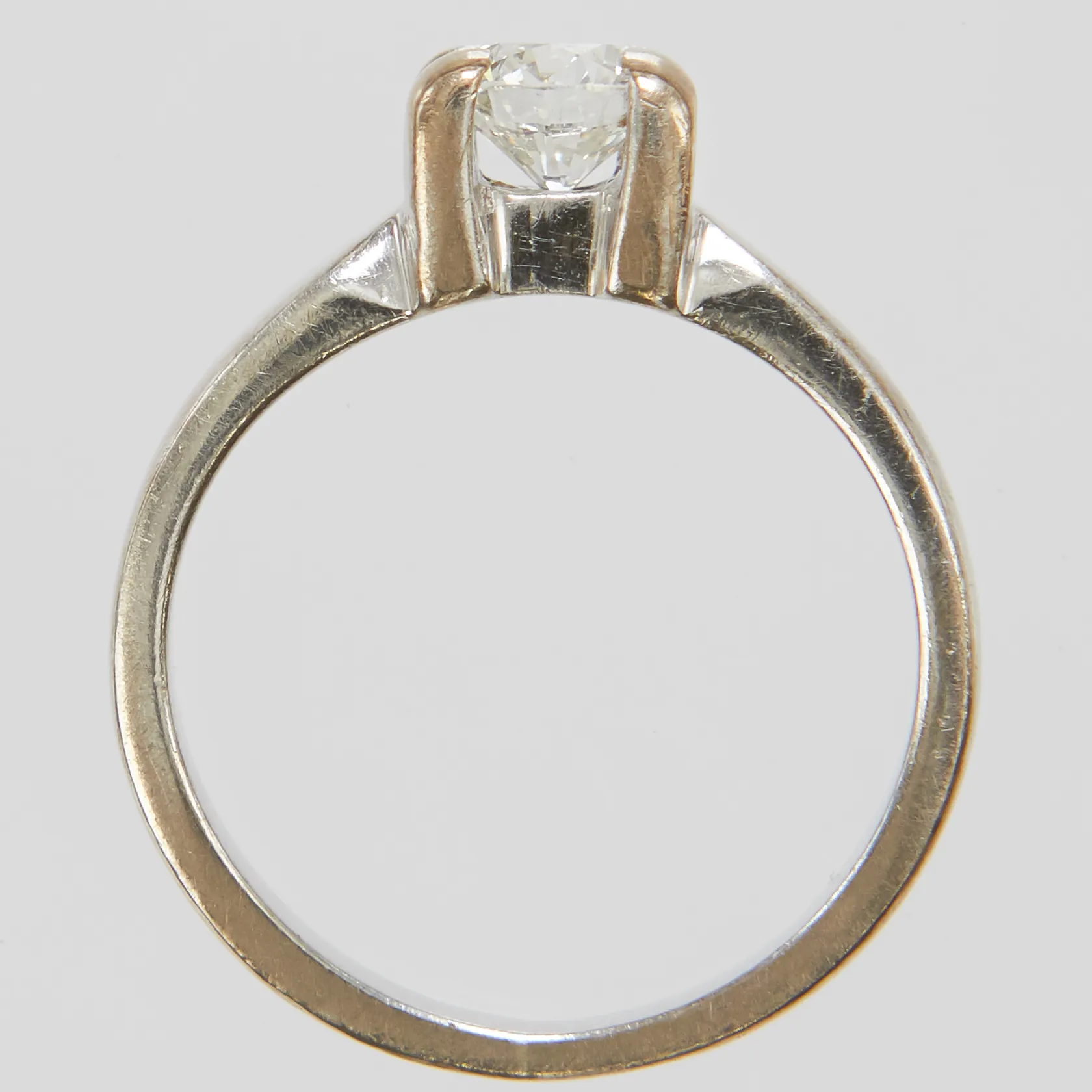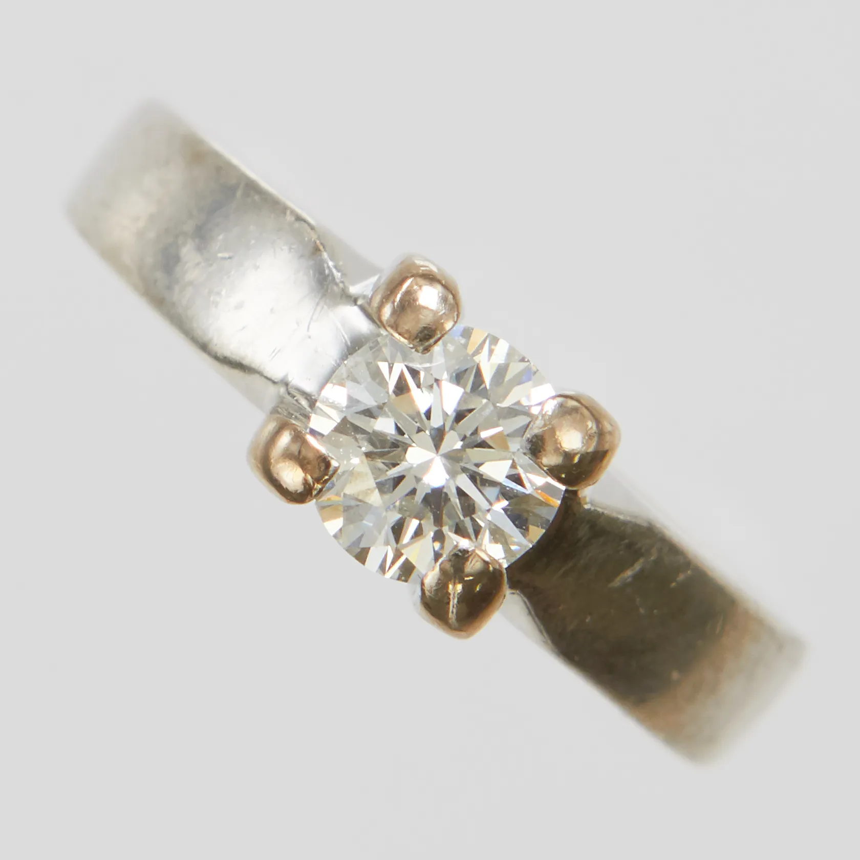 Enstensring med diamant 0,62ct enligt gravyr, ca.TW-W(G-H)/SI2, rondistskada, Ø16-, bredd: 2,8-5,7mm, ograverad, vitguld, 18K Vikt: 5,2 g.