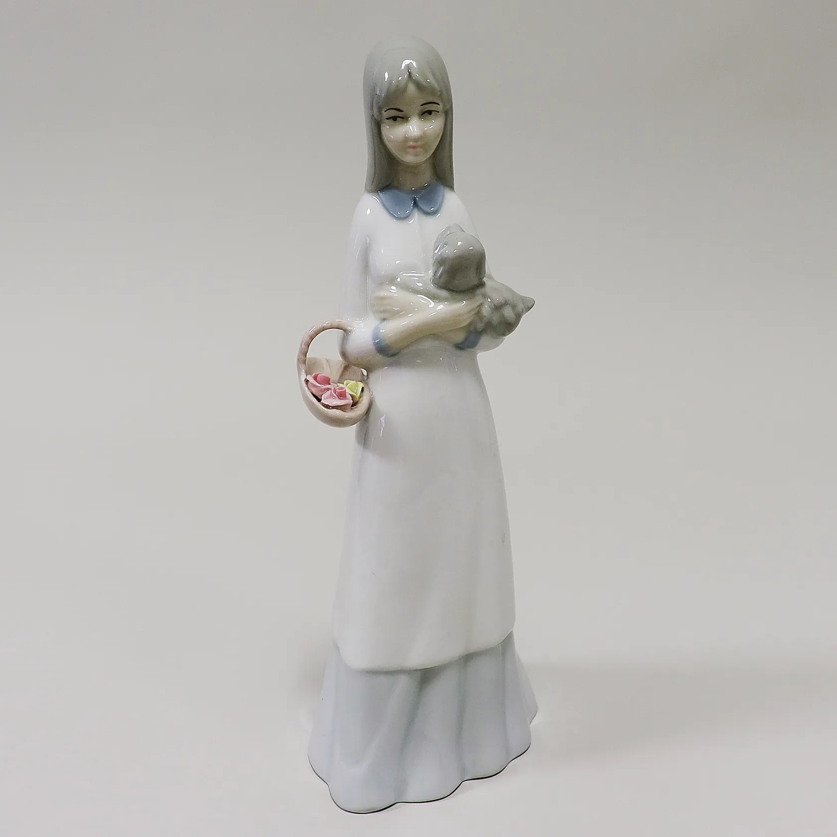 Figurin, Valencia, flicka med hund och blomkorg, ca 24cm Skickas med postpaket.