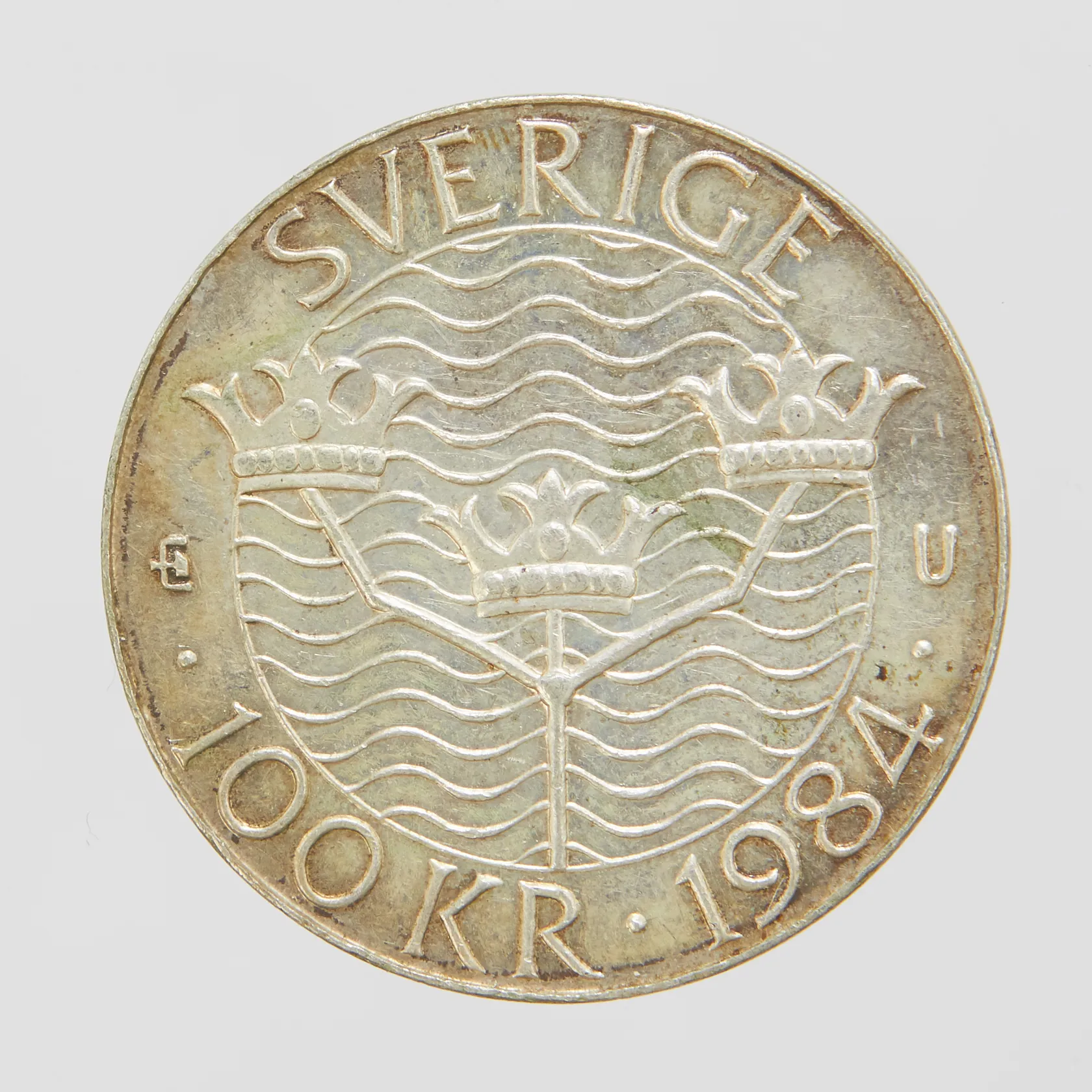 Mynt, Förtroende, säkerhet, nedrustning, Stockholm Europa, Sverige 1984, nominellt värde 100kr, Ø 32mm, plastetui, silver 925/1000 Vikt: 16 g.