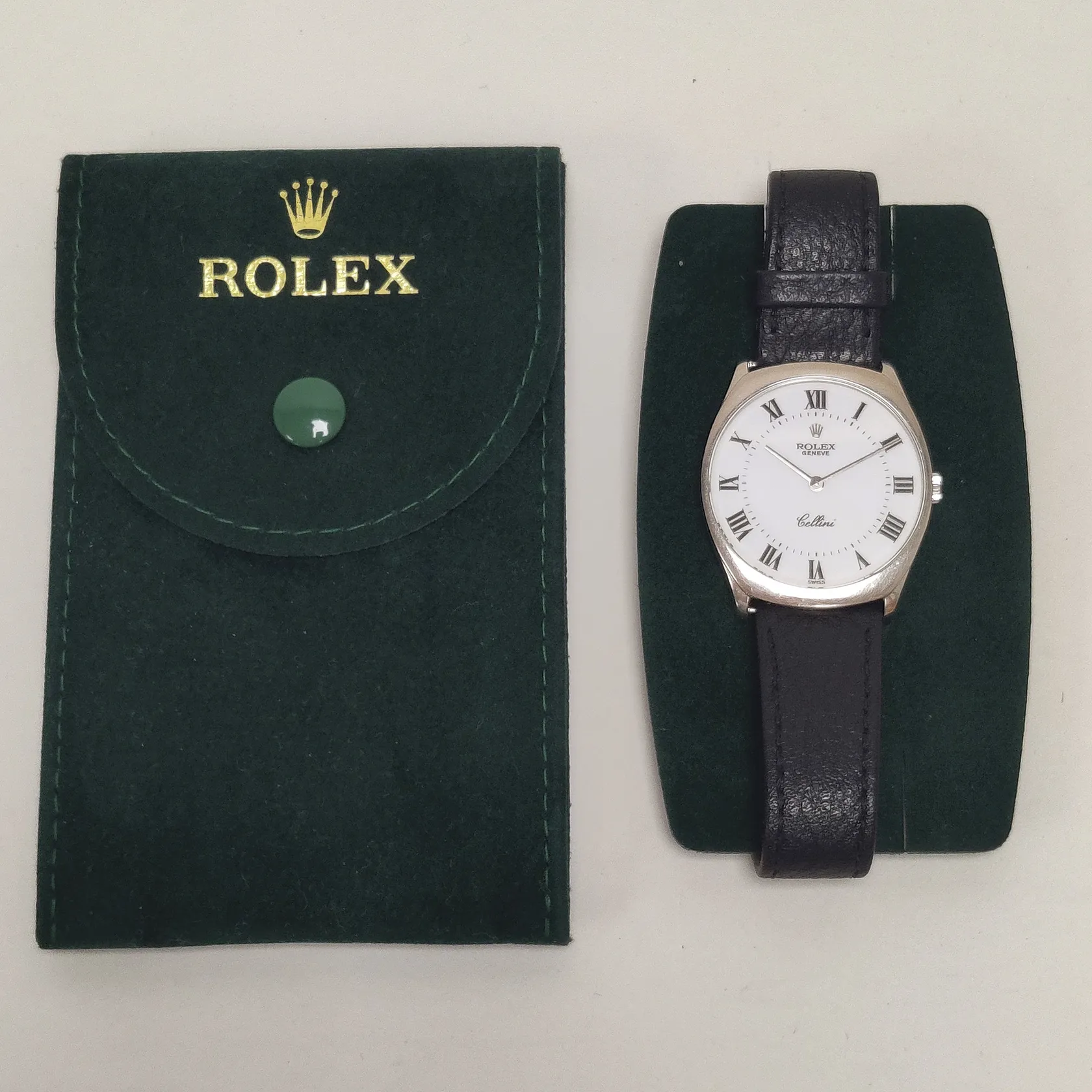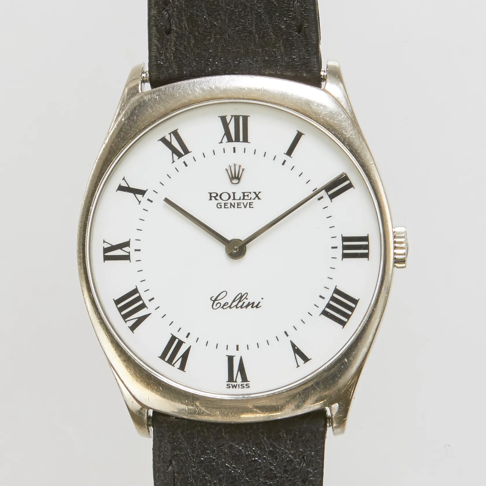 Herrur Rolex Cellini, vitguld 18K, manuell, Ø 33mm, refnr: 4133, boettnr: 1121001, cal. 4133, safirglas, läderband ej original, rese etui, servicebehov, inga tillbehör.