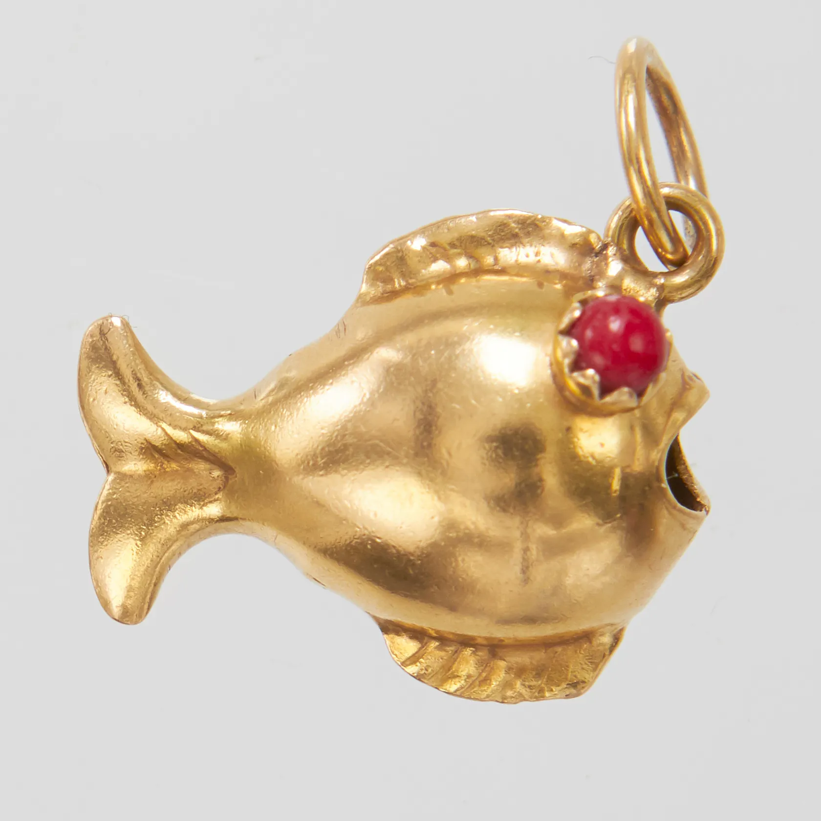 Hänge fisk, stenar, längd ca 20mm inkl ögla, bredd 18mm, ihålig, 18K Vikt: 2,8 g.