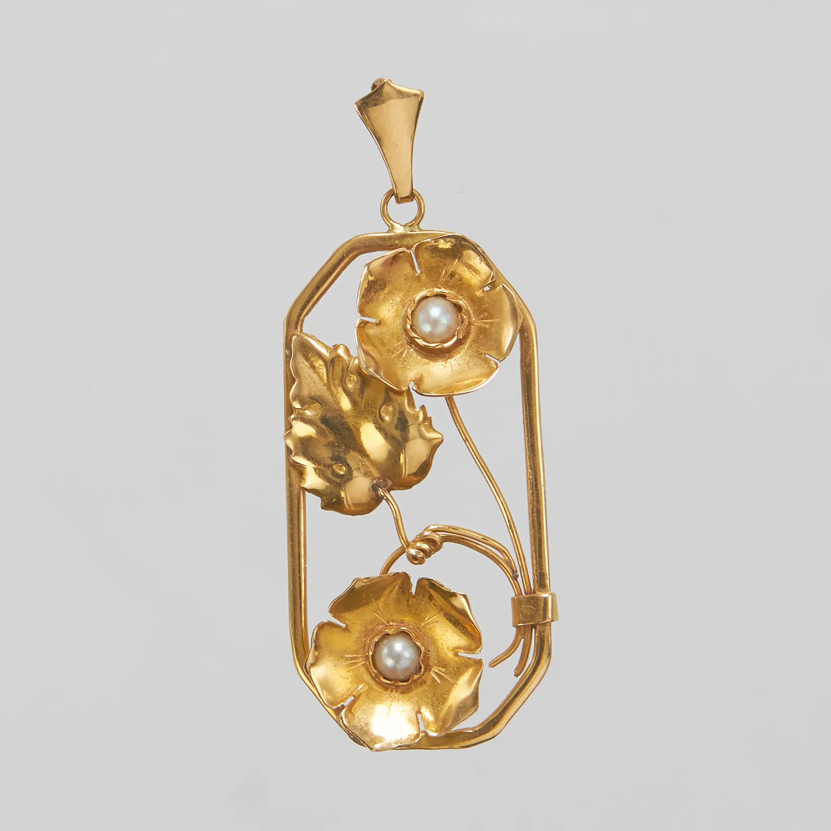 Hänge med odlade saltvattenpärlor, längd ca 48mm inkl ögla, bredd 19mm, 18K Vikt: 3,8 g.