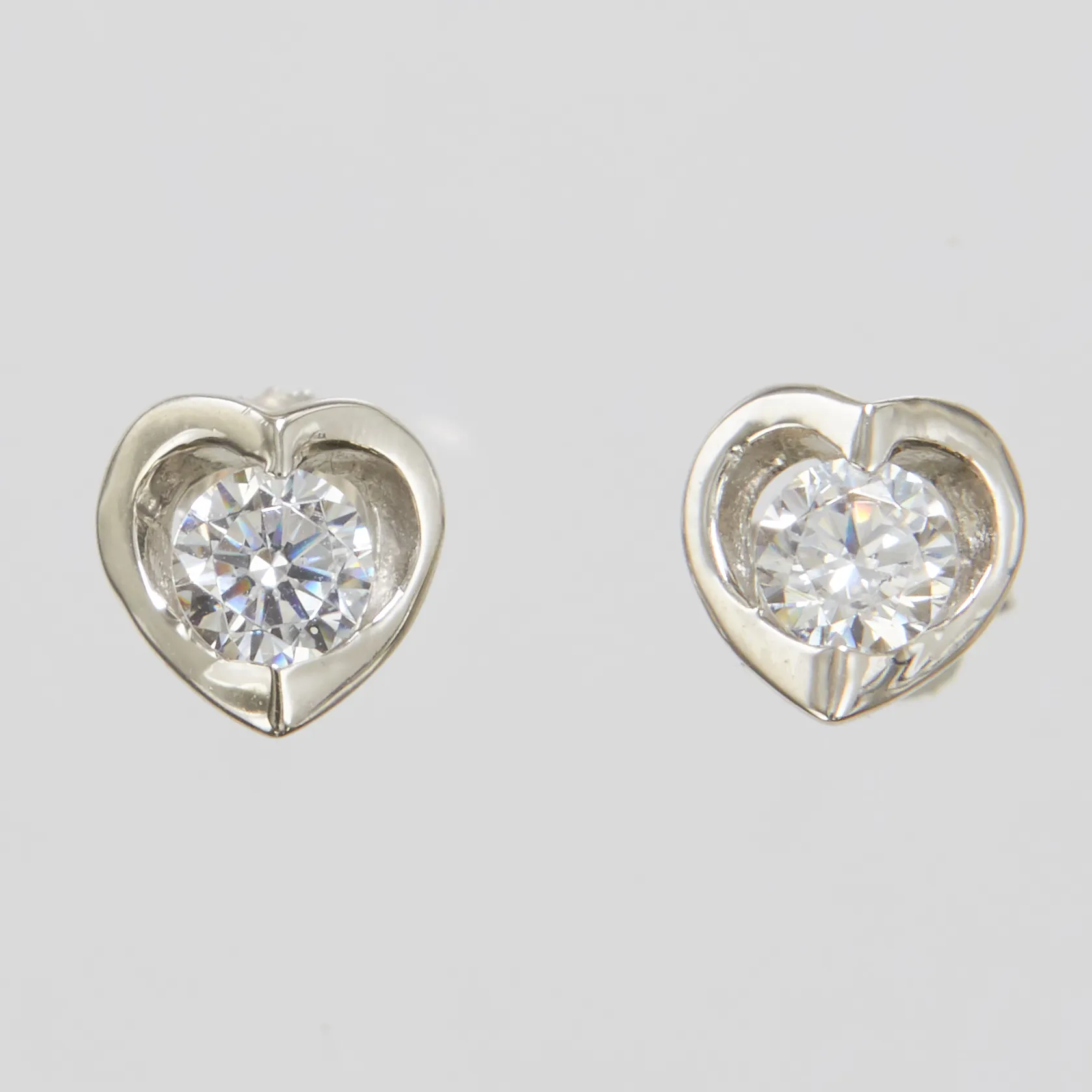 Ett par örhängen hjärtan, vita stenar, ca 6,7x6,9mm, vitguld, 14K Vikt: 1,3 g.