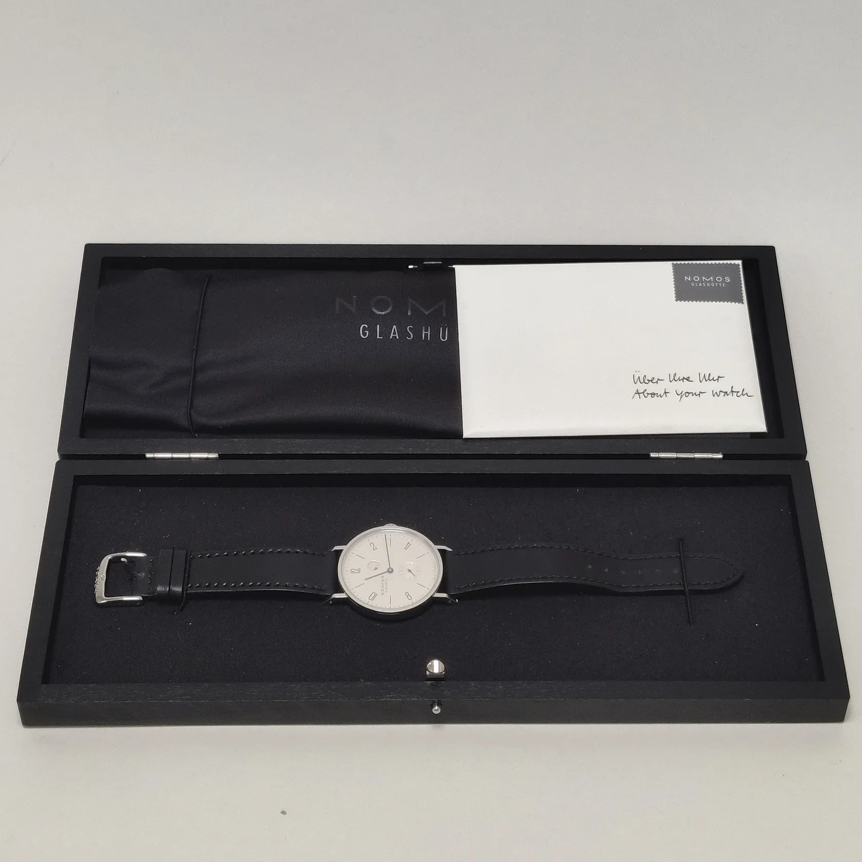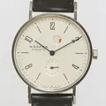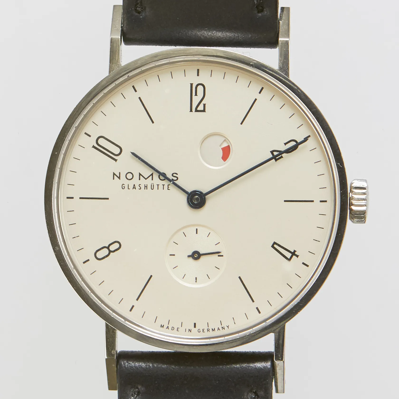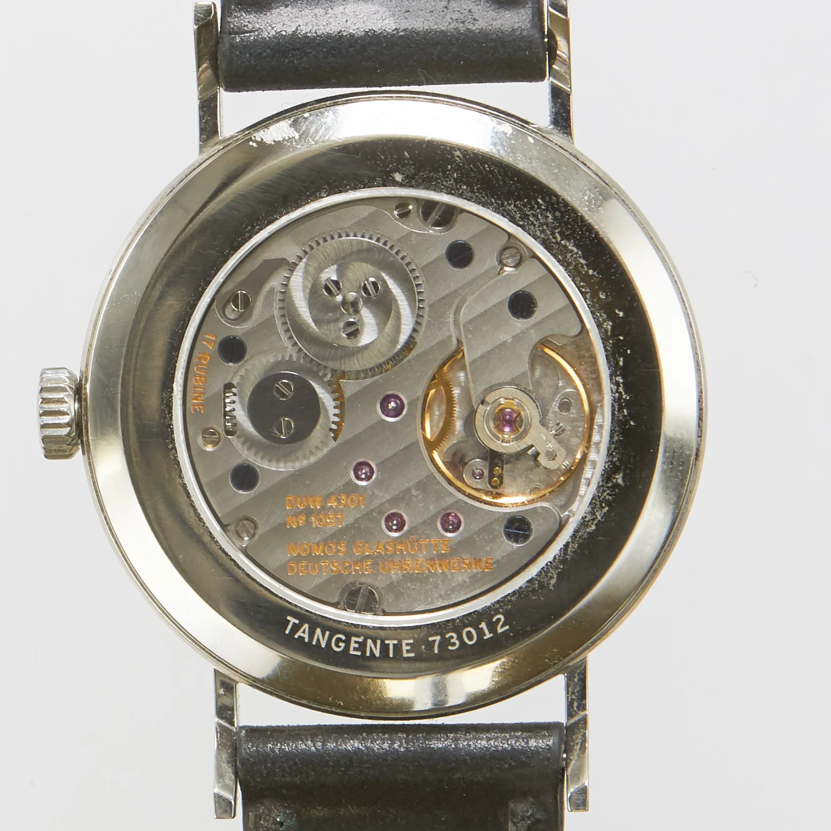 Herrur Nomos Glashütte Tangente power reserve, stål, manuell, Ø 35mm, refnr: 172, serienr: 73012, cal. DUW 4301, safirglas, original läderband, certifikat samt kvitto från Franks ur 2023, felaktigt modellnr på certifikat samt kvitto, manual, box.