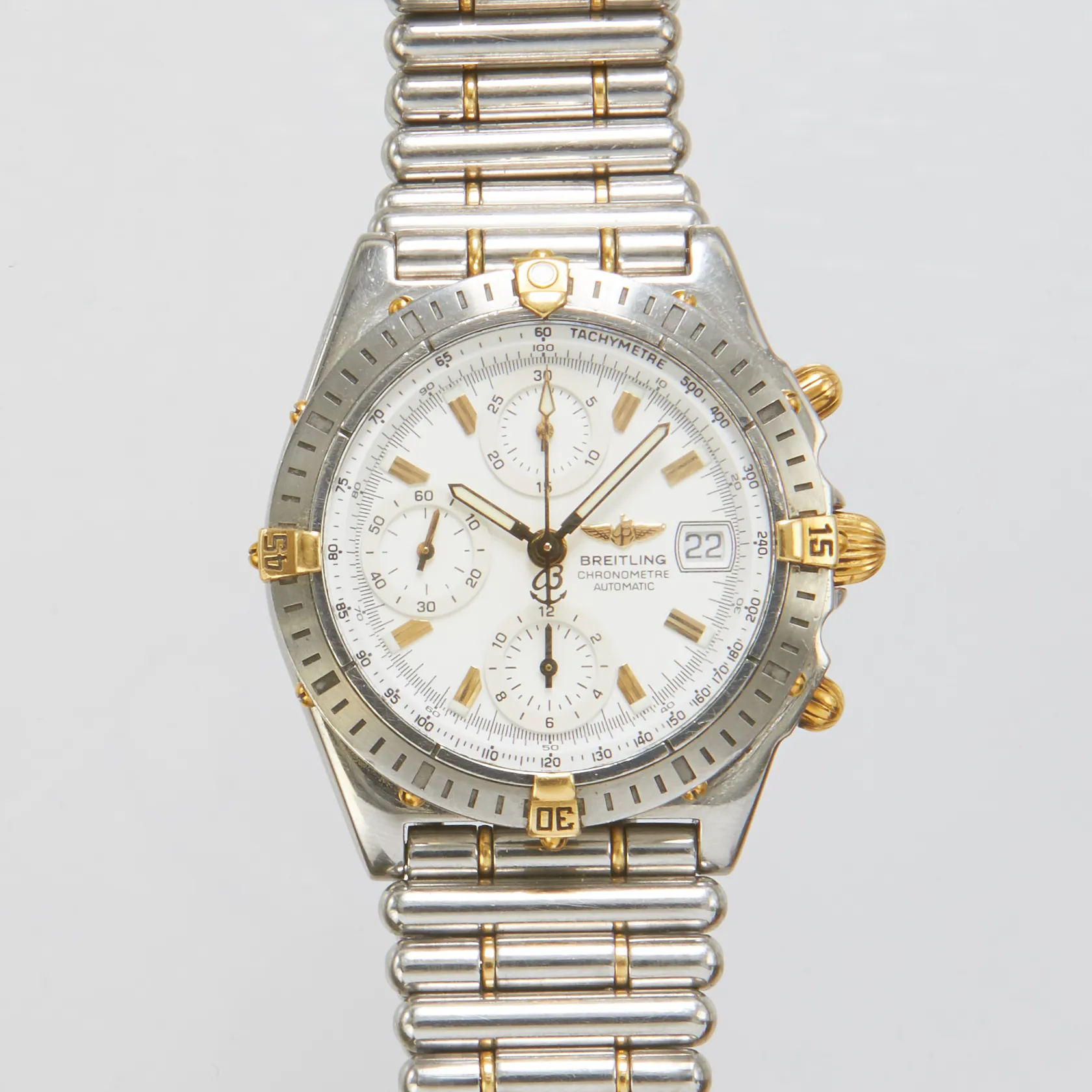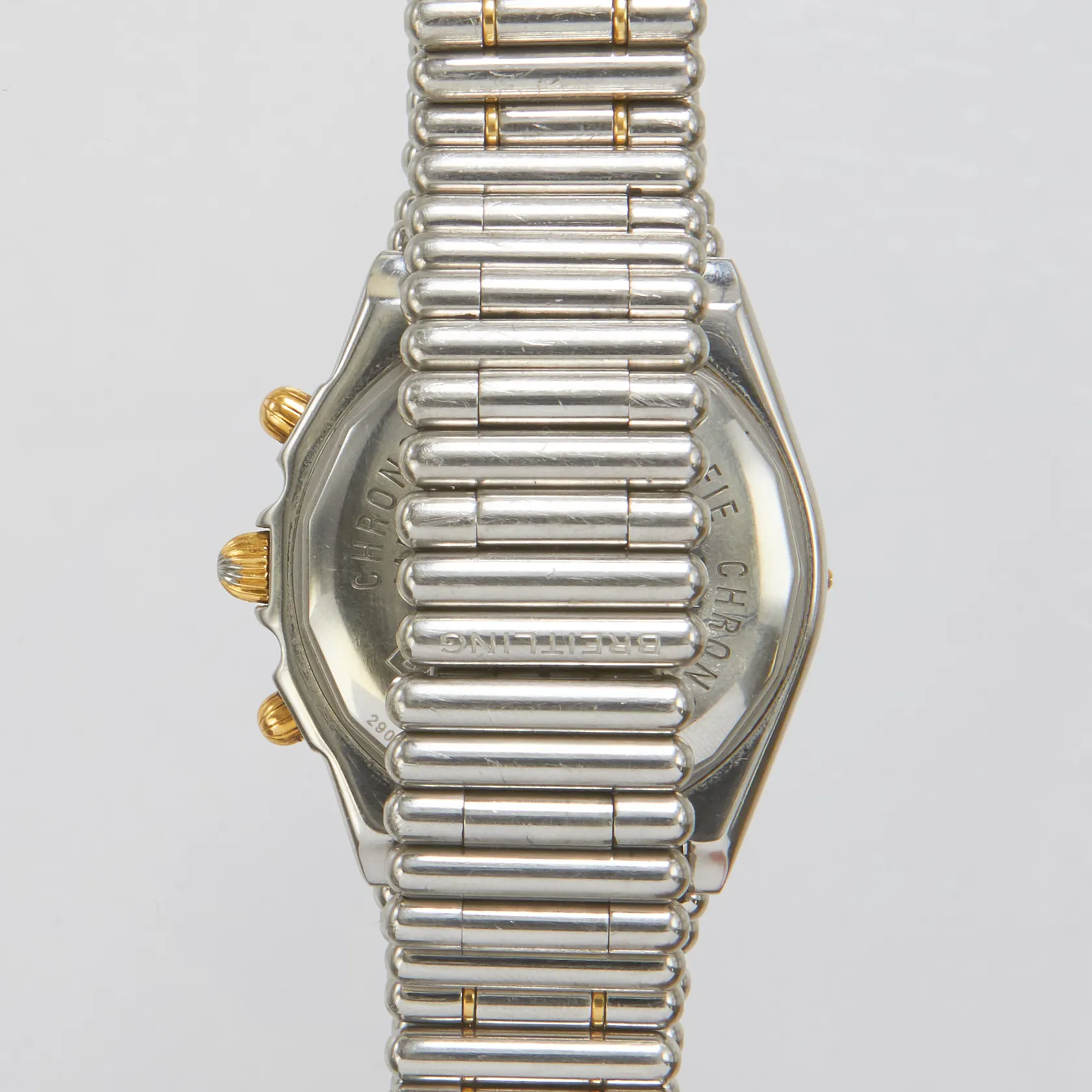 Herrur Breitling Chronomat, stål/guld, automatisk, 39mm, ref: B13352, snr: 290355, Cal. B13, safirglas, datum, kronograf, Rouleauxlänk, stål/guld, dubbelviklås, en extra länkbit, manual, chronometercertifikat, box, ytterkartong.